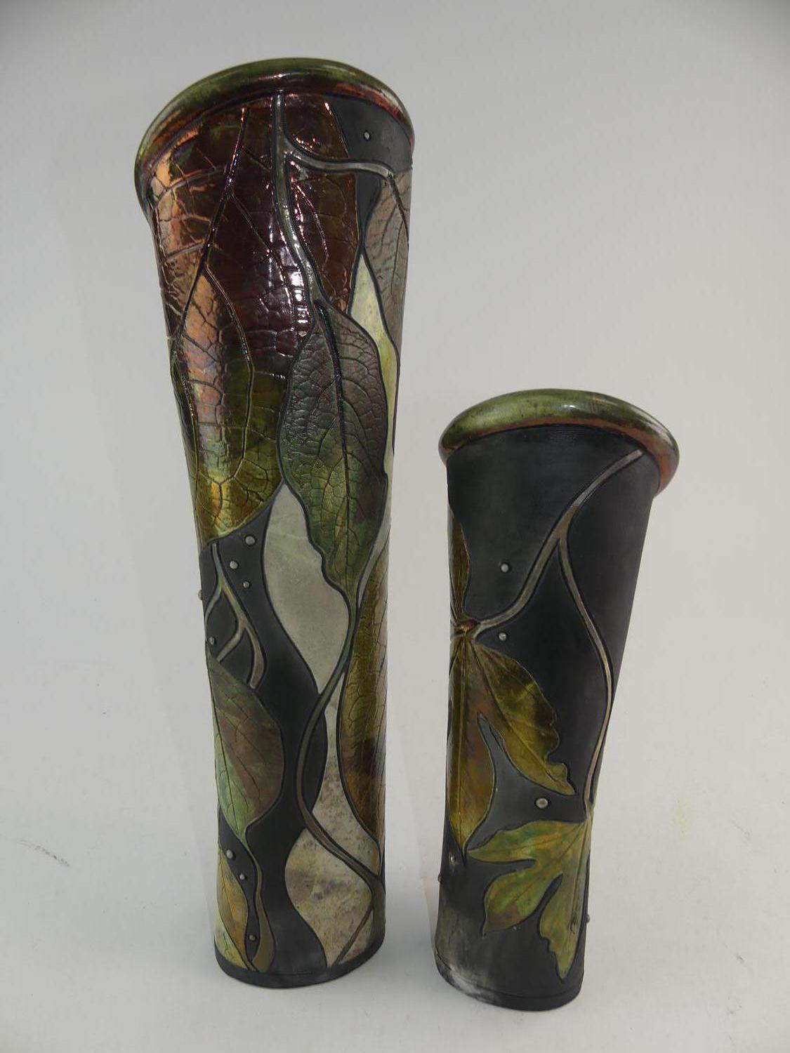 two raku vases
