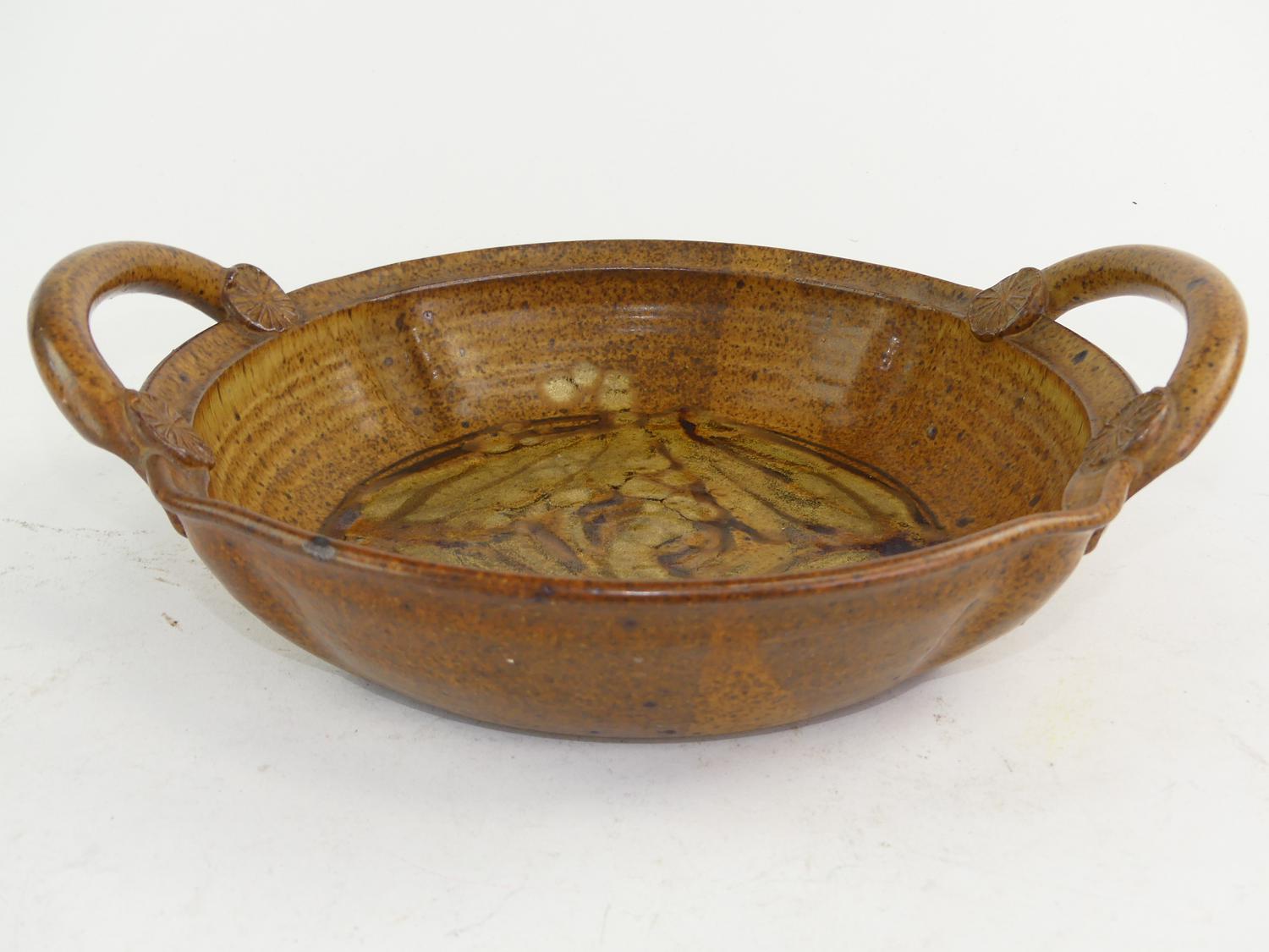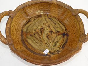 robin hopper art pottery two handled bowl, 4" x 13" x 11"