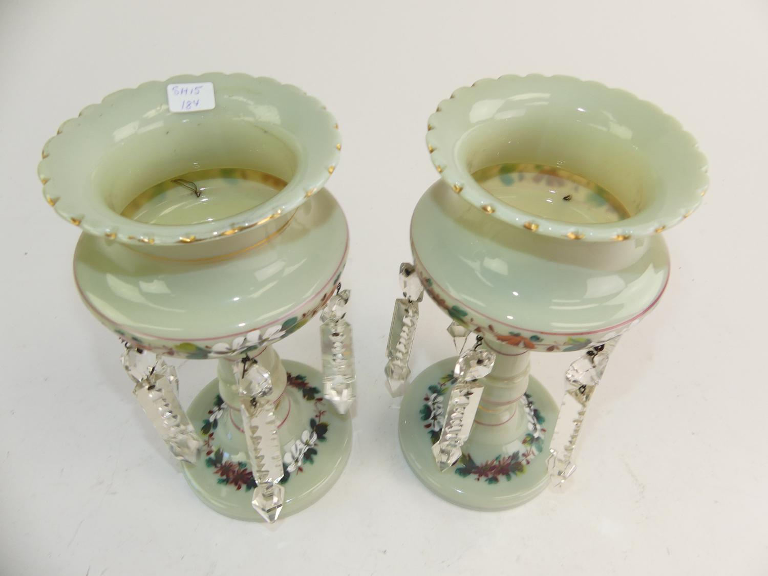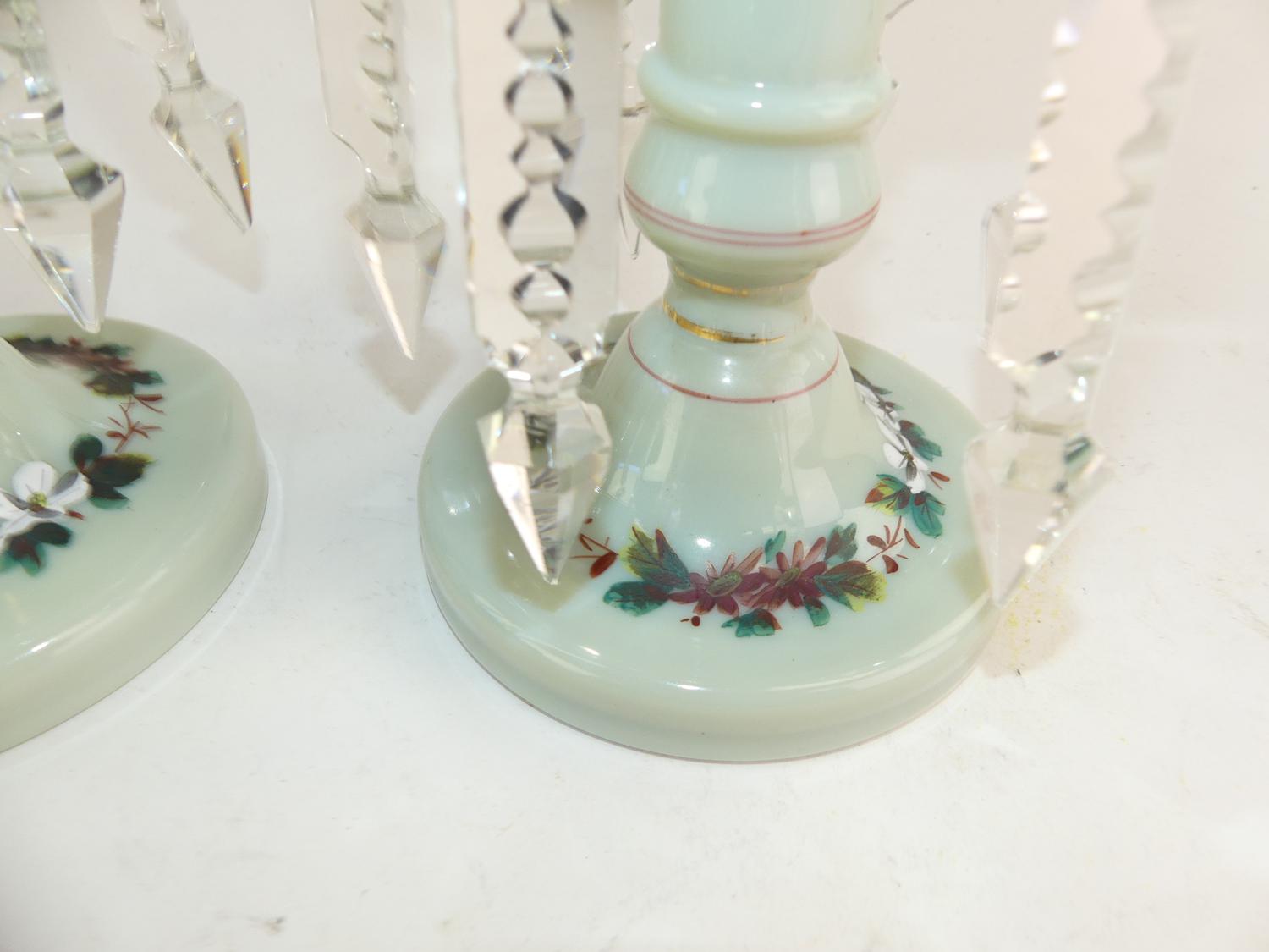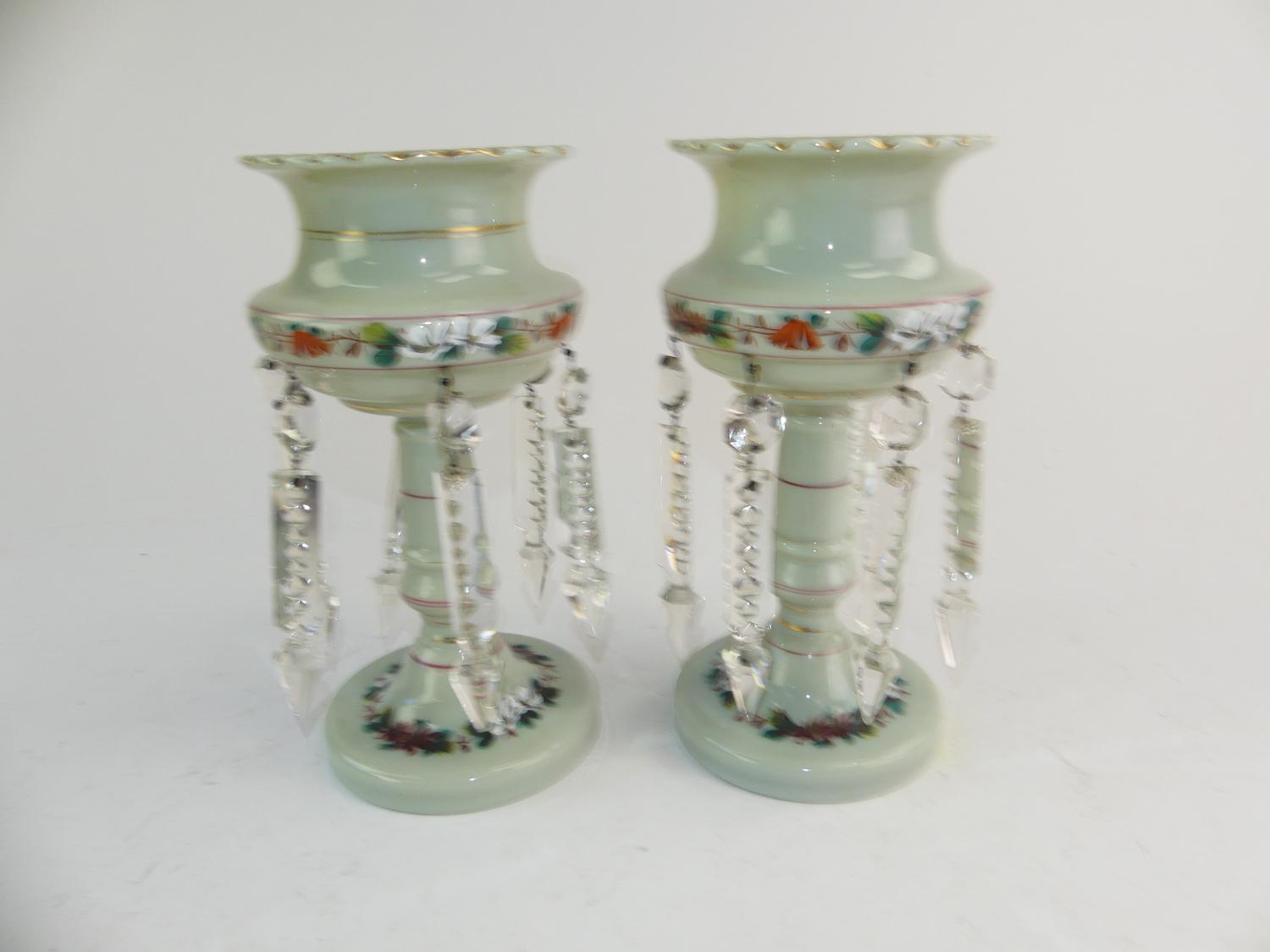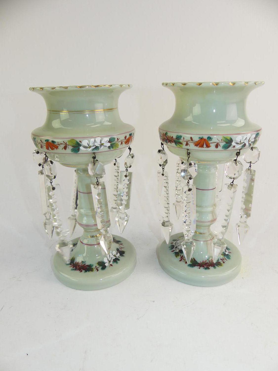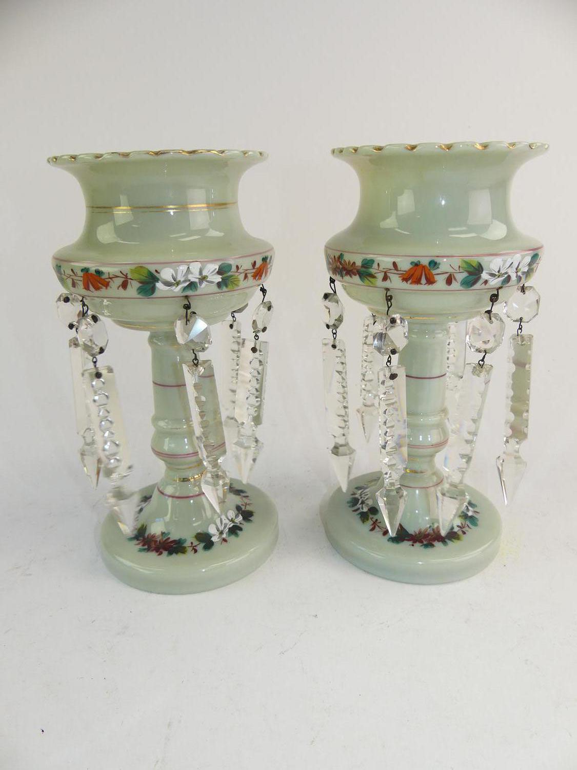 pair of late 19th century painted colored glass lustres, ht 9 1/4"