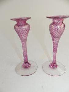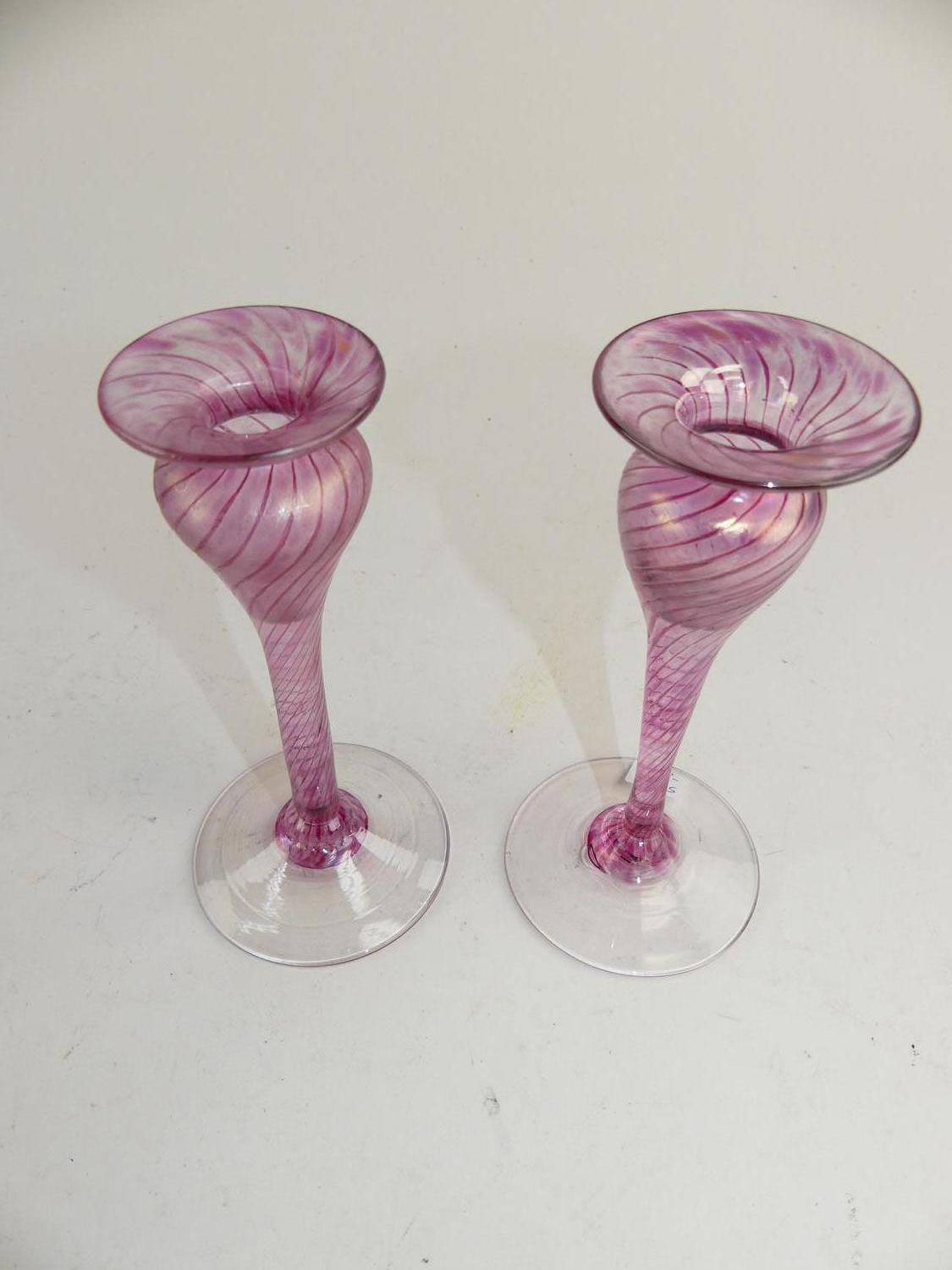 pair of robert held art glass candle sticks, ht 6 1/2"