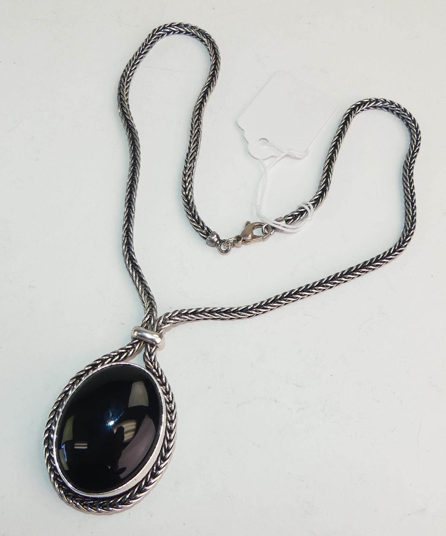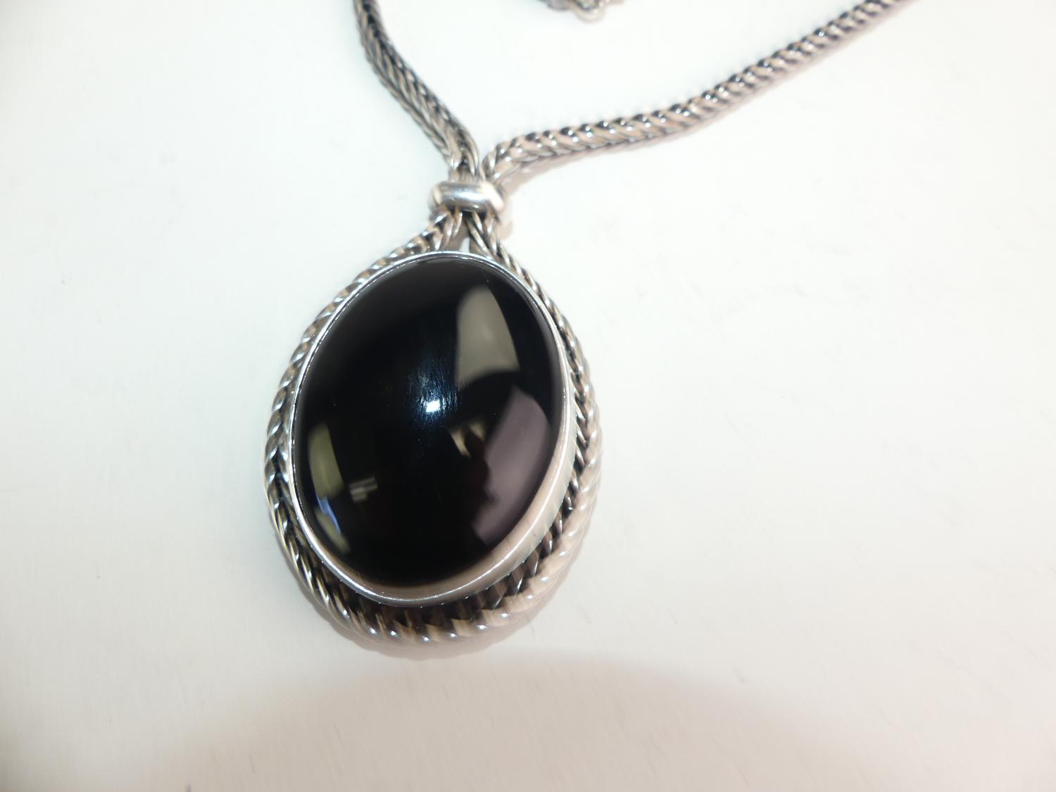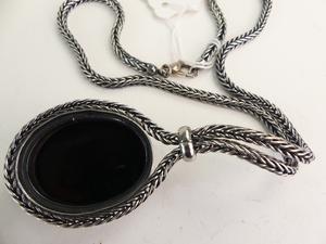 sterling silver hallmarked onyx pendant necklace, 73 grams