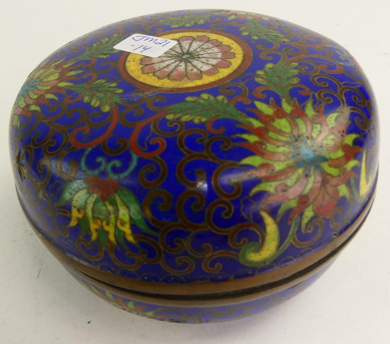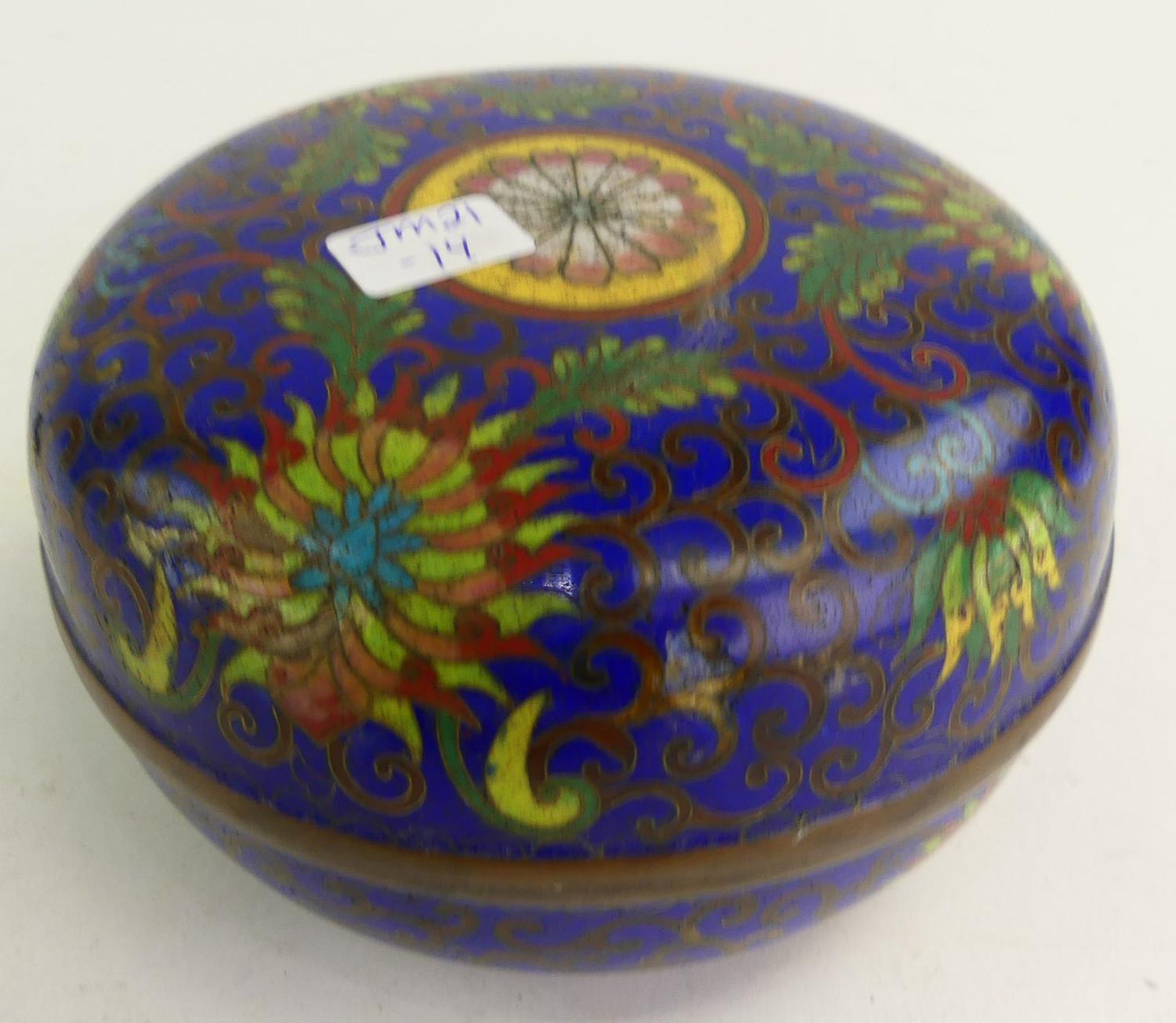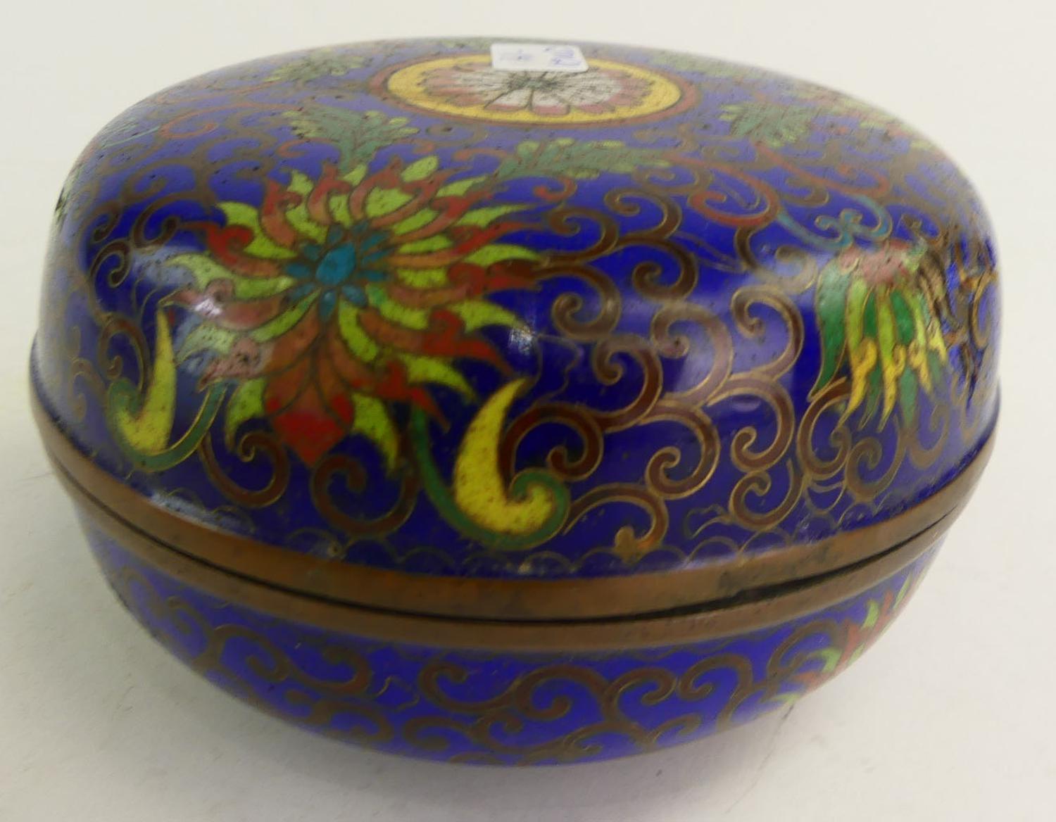 chinese cloisonne enamel covered box, 3" x 5"