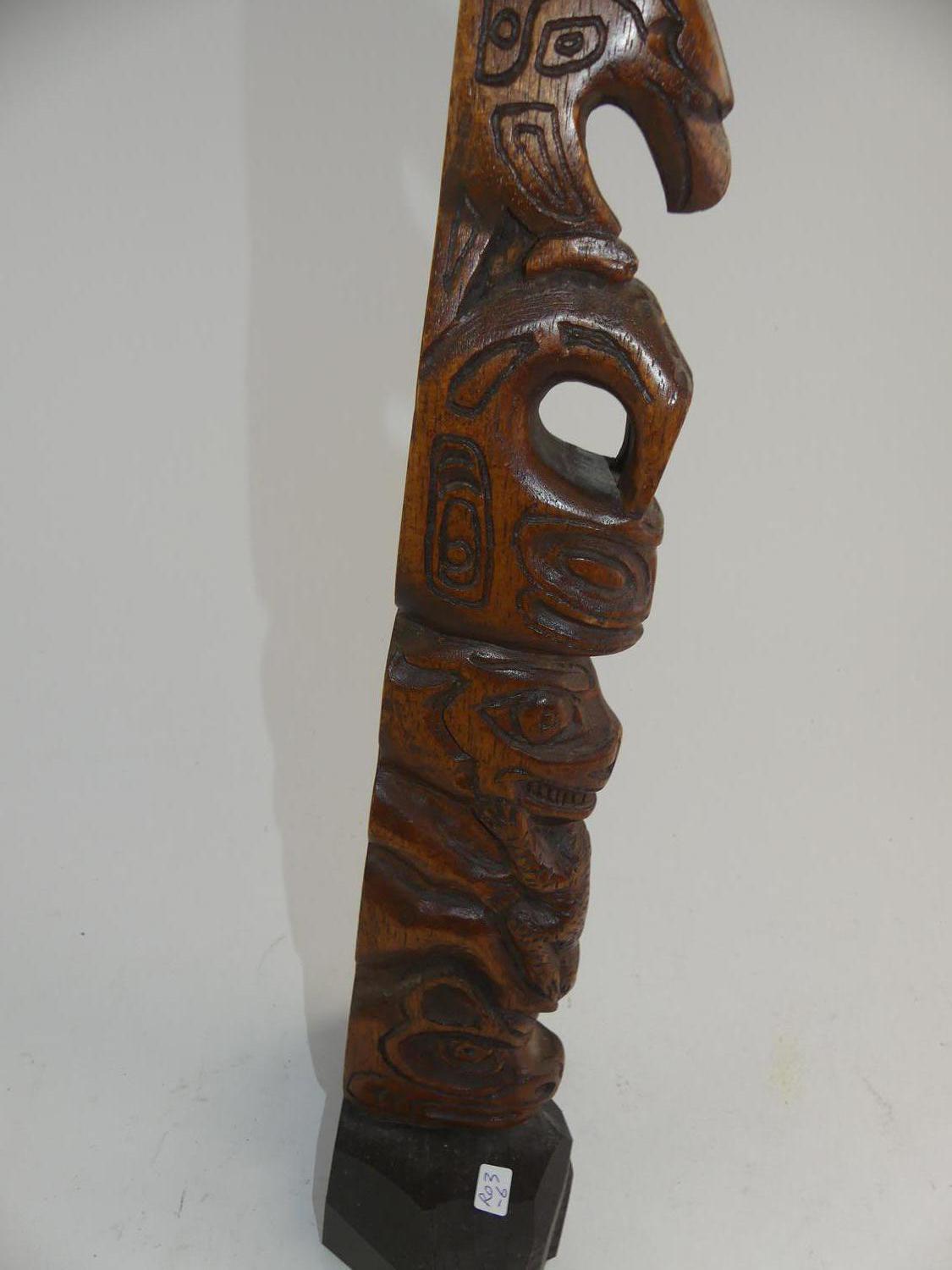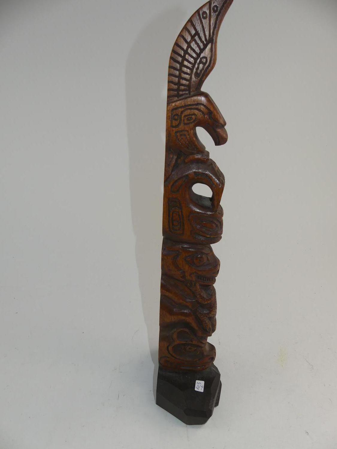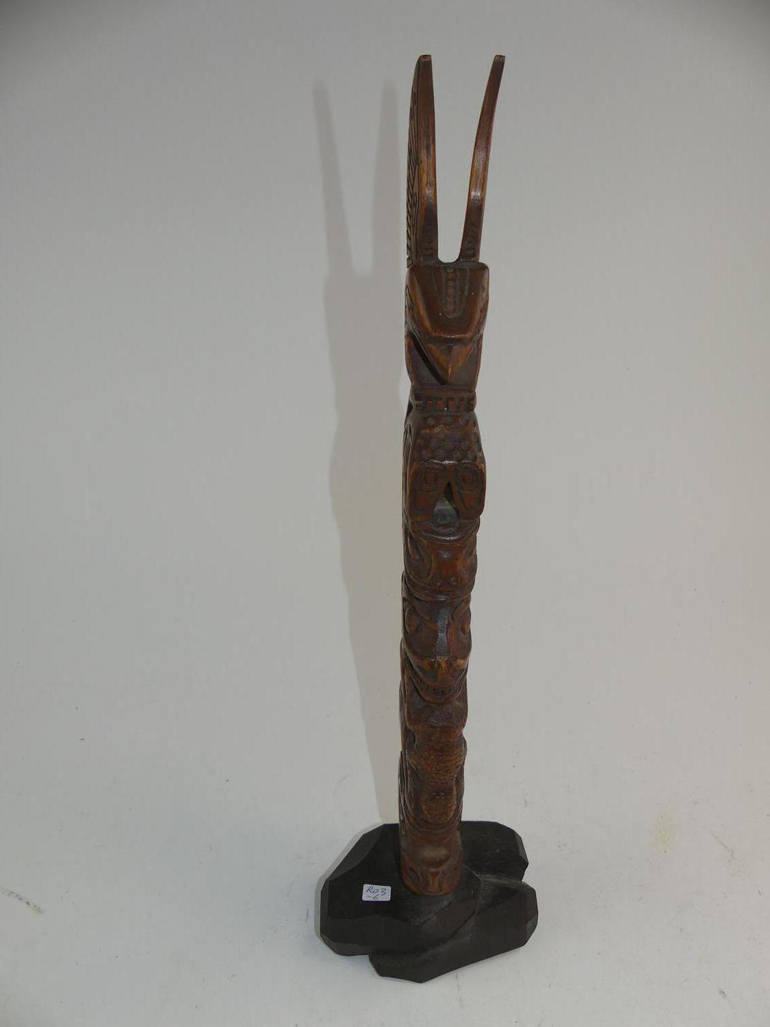 carved totem signed k. k. savel, ht. 21 1/2"