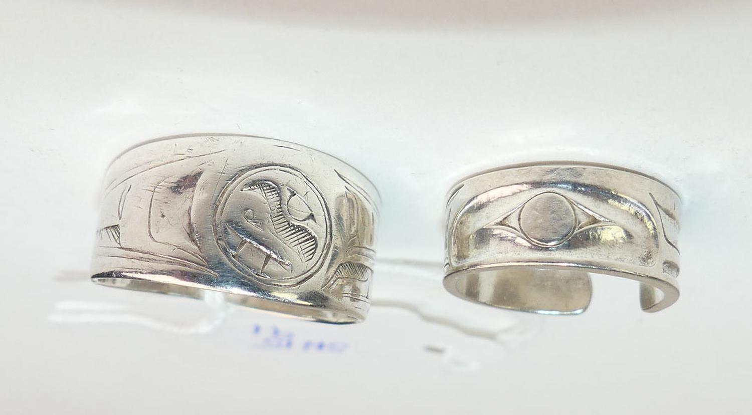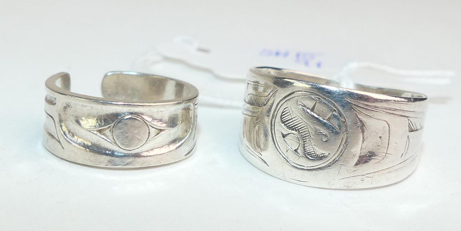 two phil janze northwest coast sterling silver rings, size 11 1/2 and 5 1/2