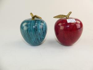 two decorative marble and brass apples