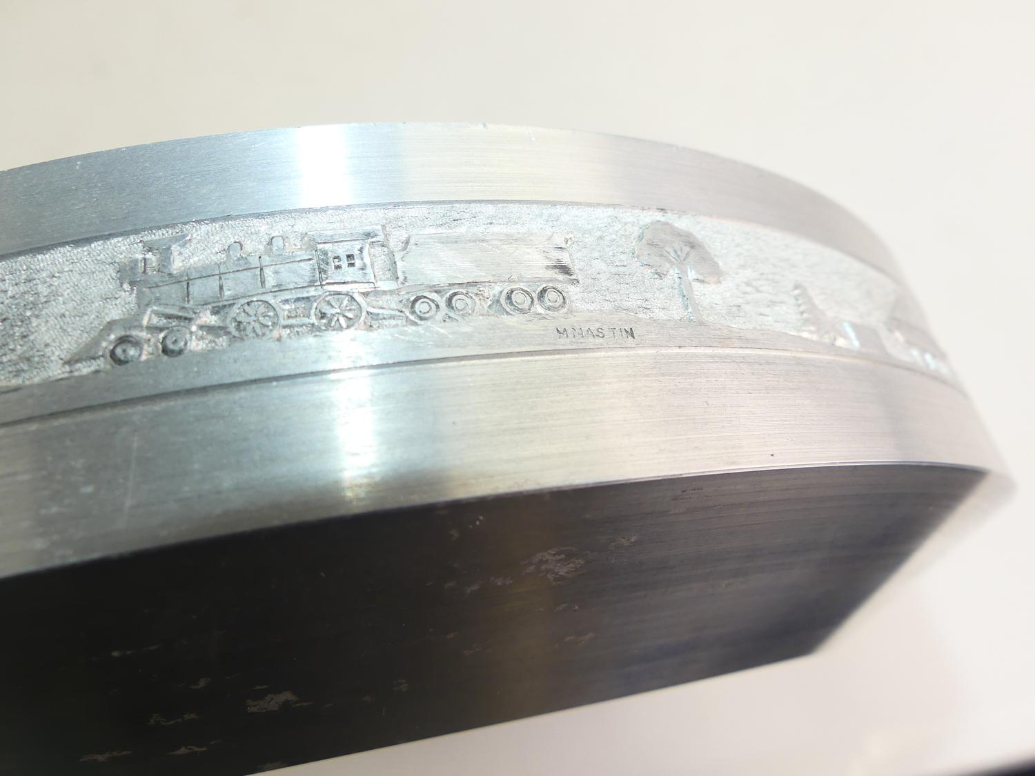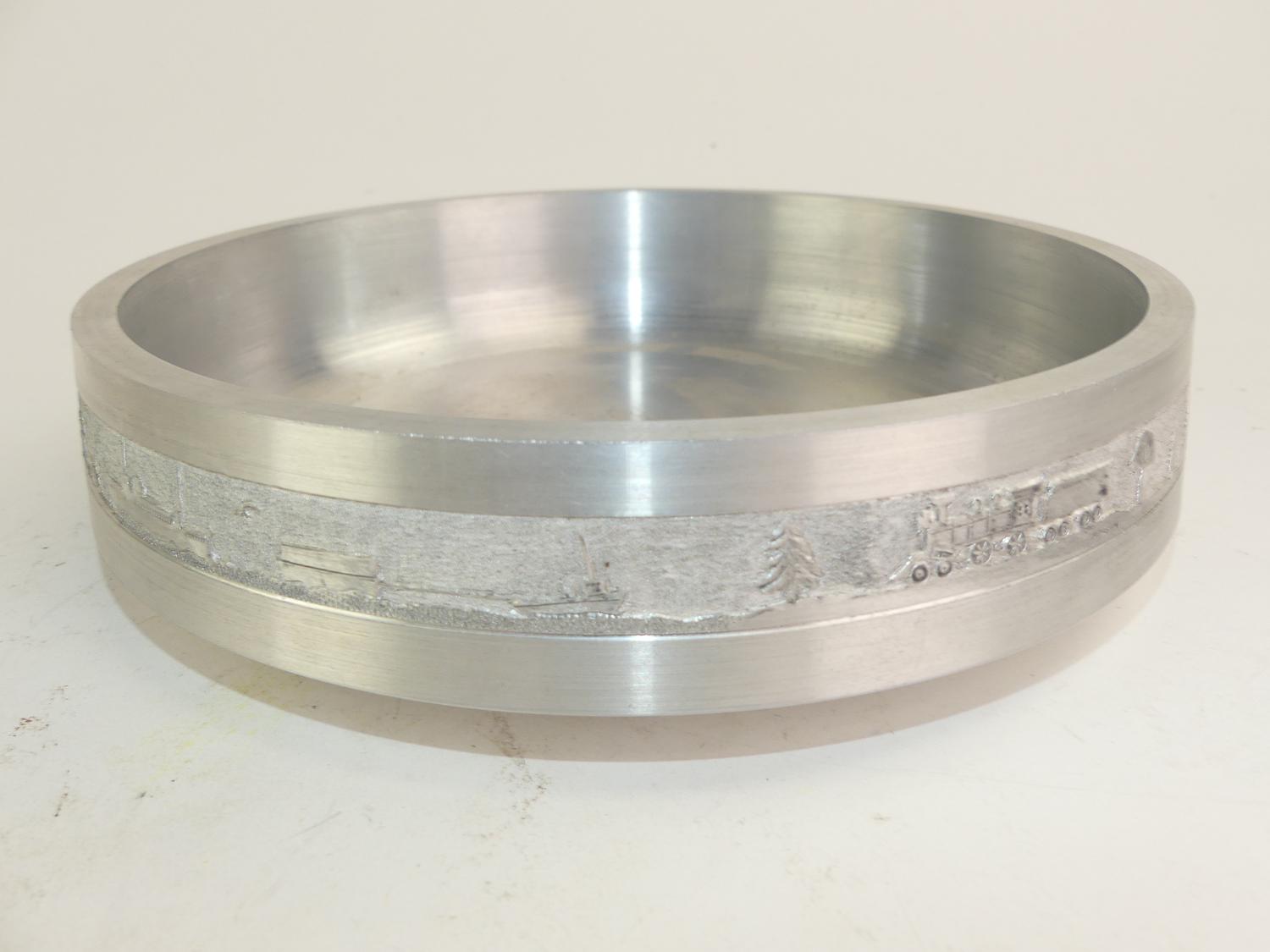 modern turned aluminum bowl with chased decoration signed h. masta, diameter 8 1/2"