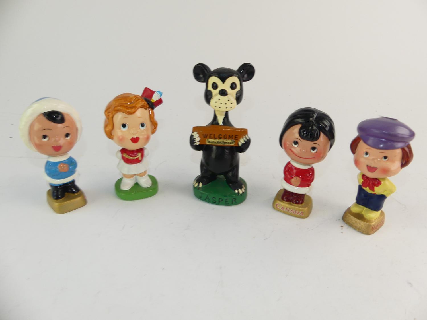 five vintage bobble head figurines, canada