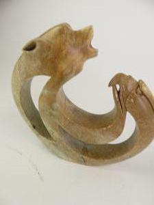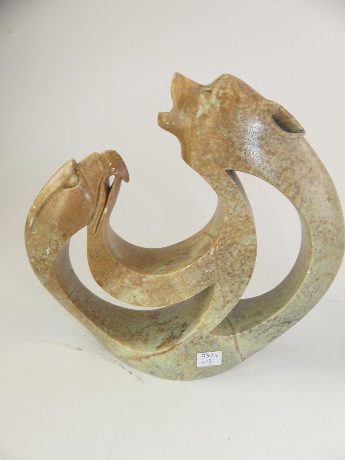 marble sculpture of "eagle & bear" signed clifton henry, six nations, ontario, dated 2002, ht. 8 3/4"