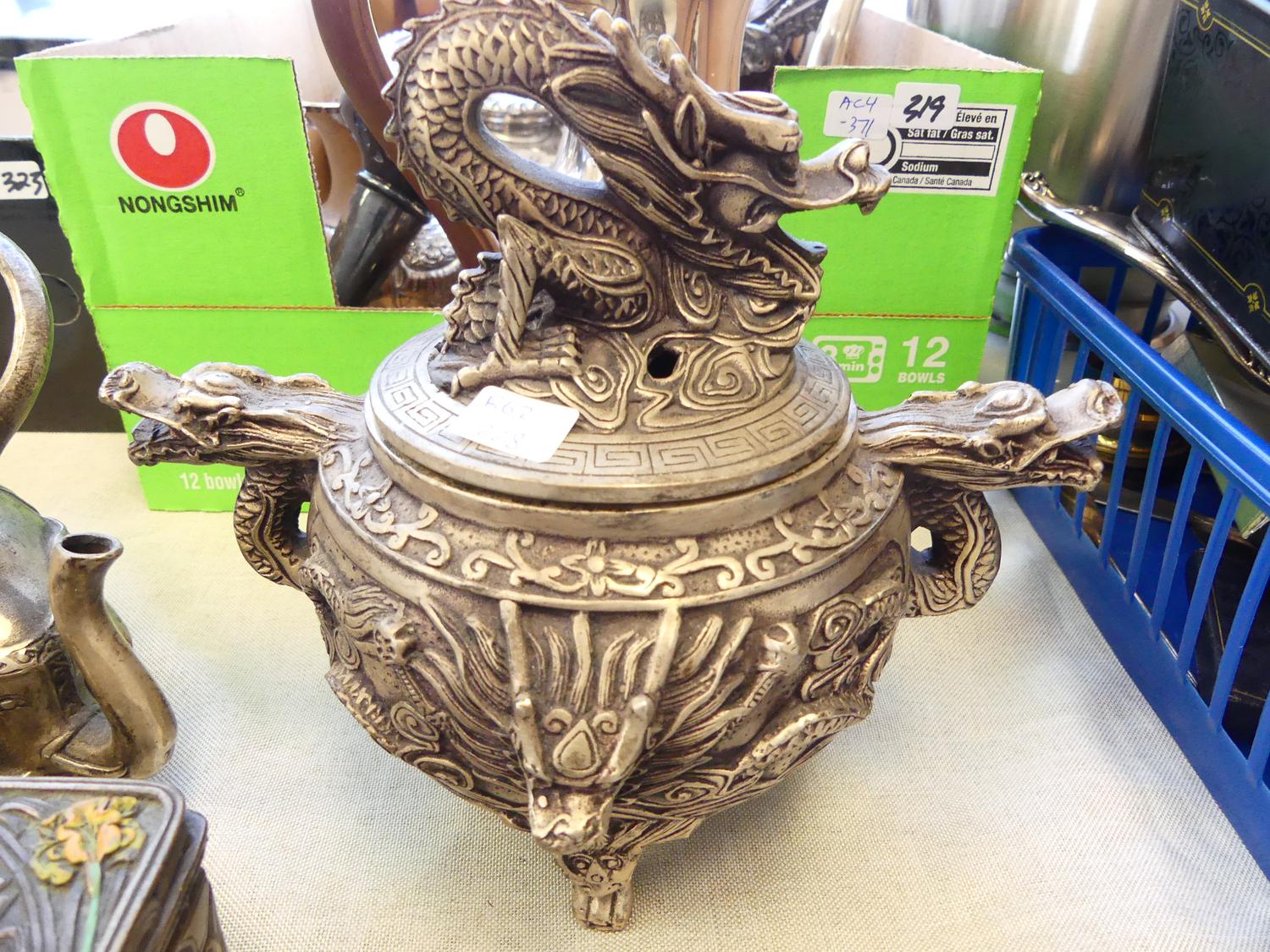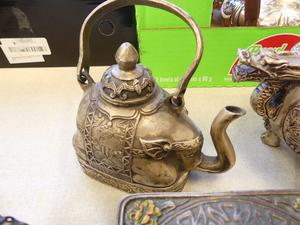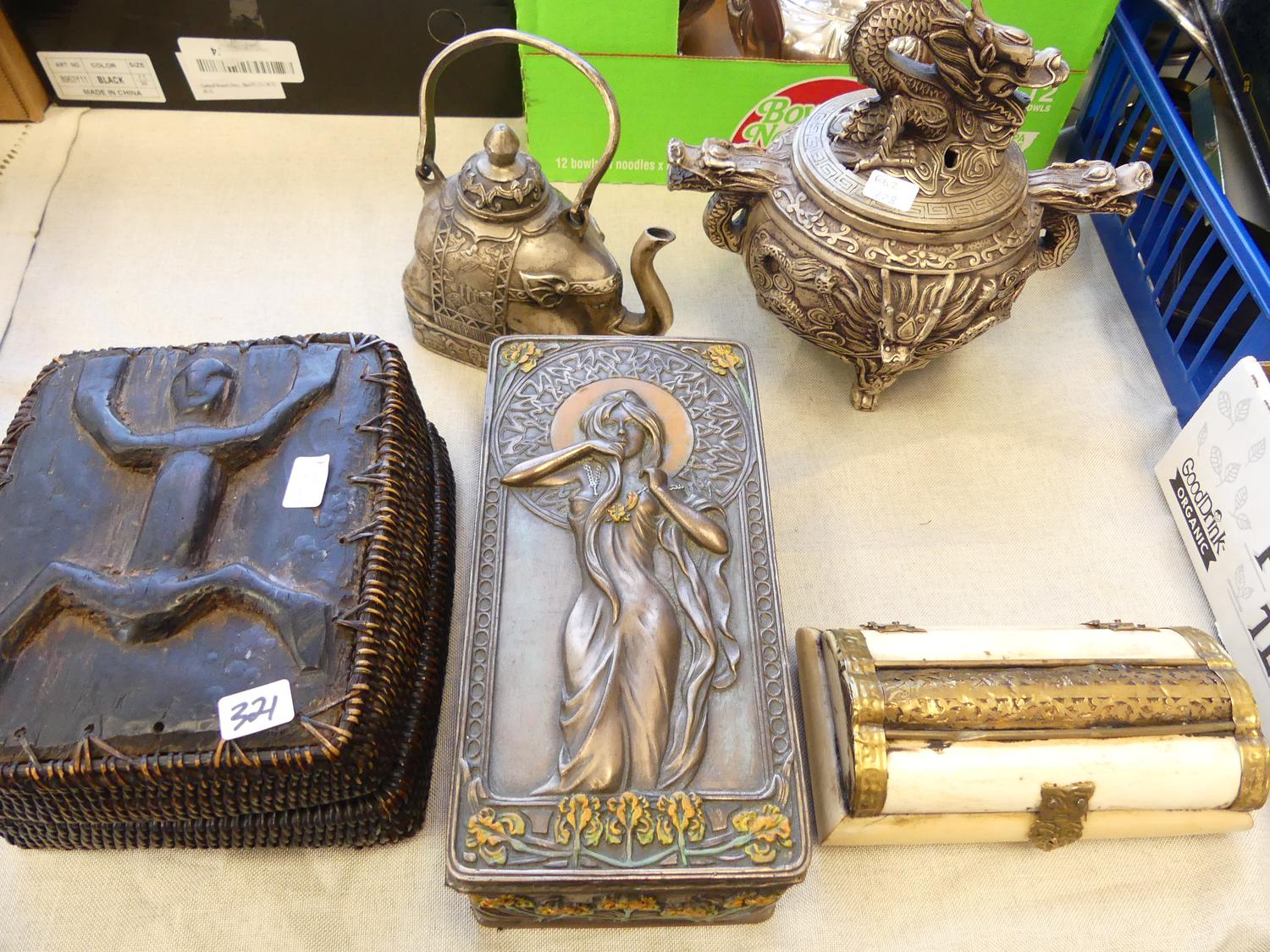 2 chinese silver plated incense burner, teapot, boxes