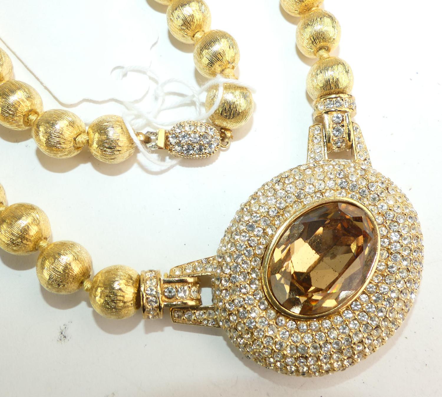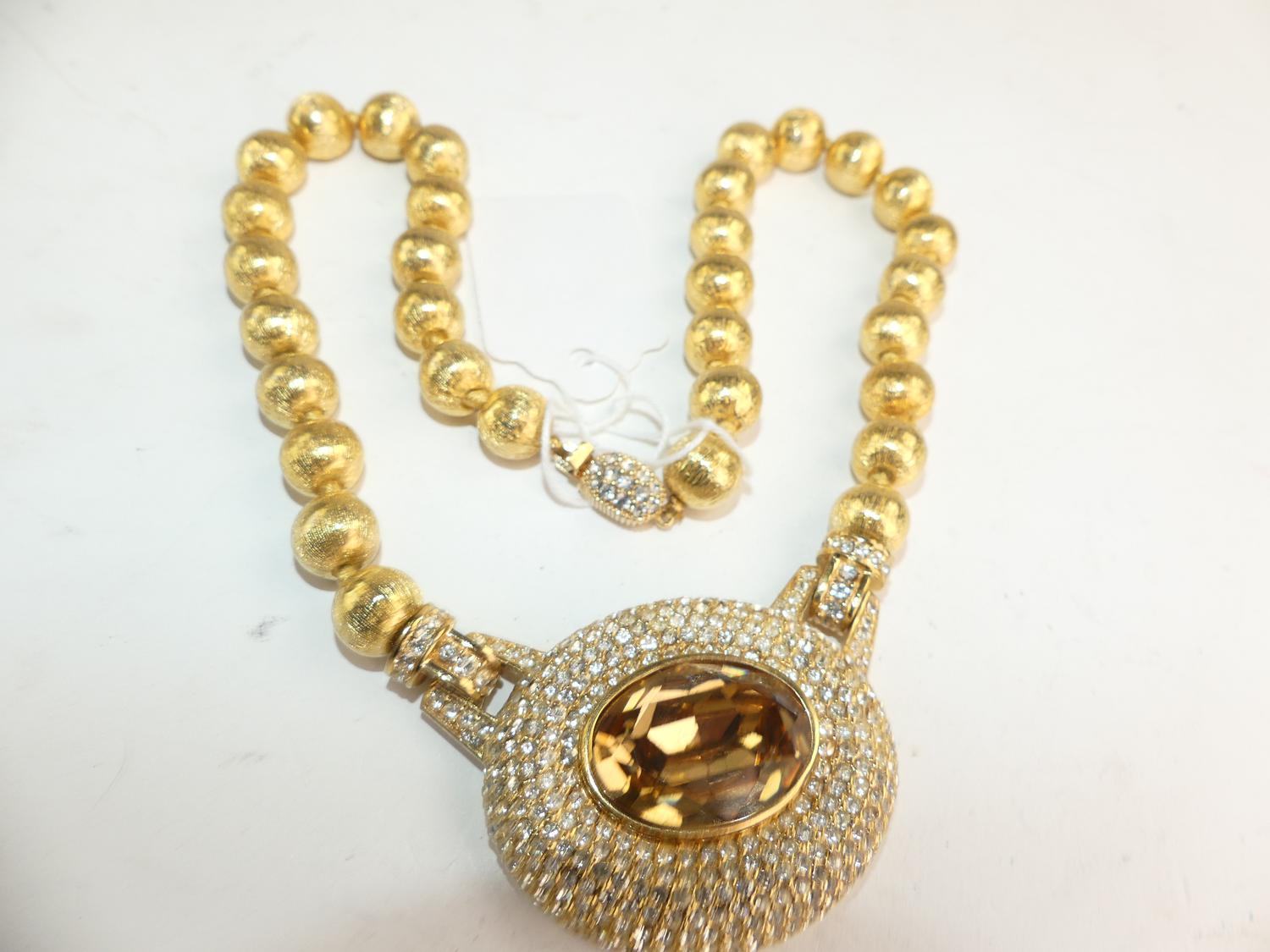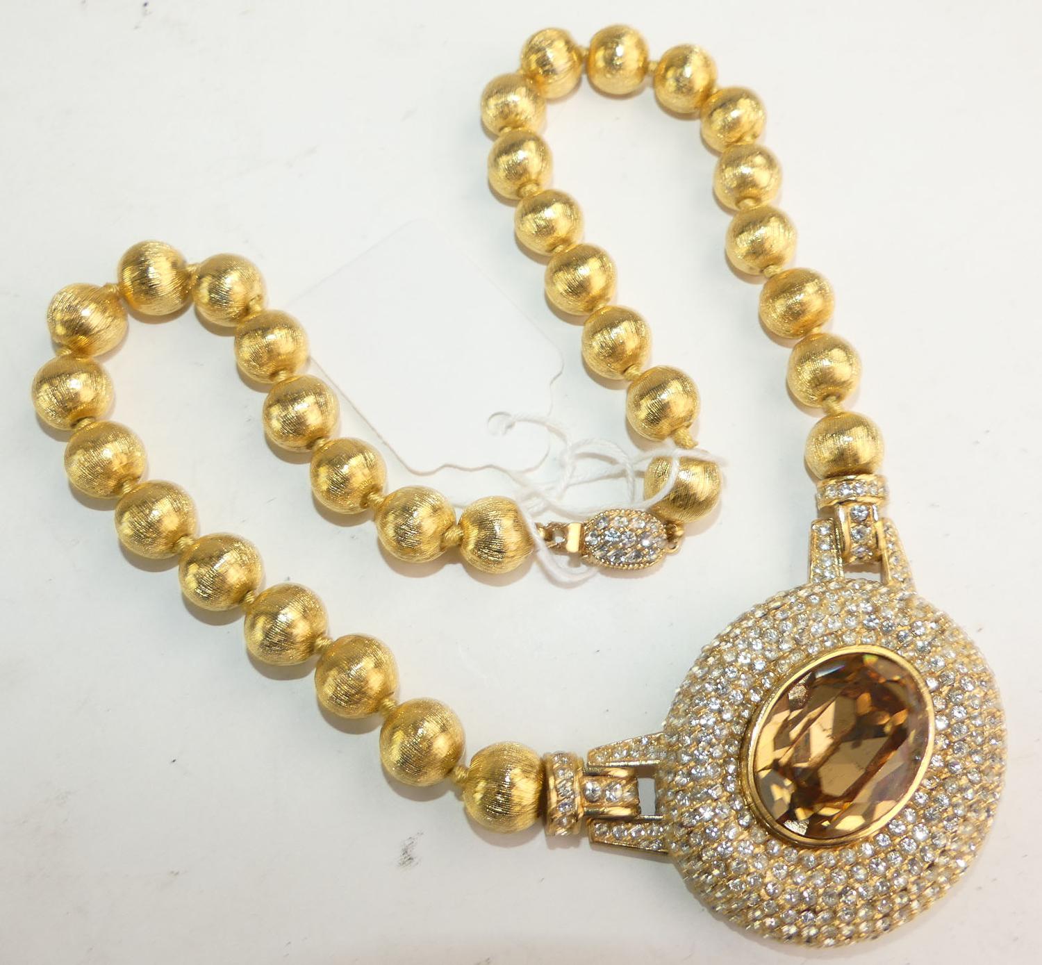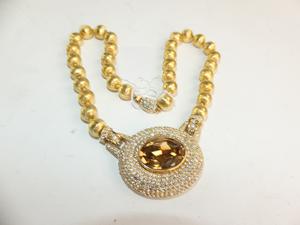vintage signed ciner rhinestone "topaz" necklace collar, 18"