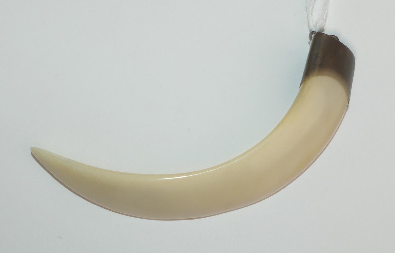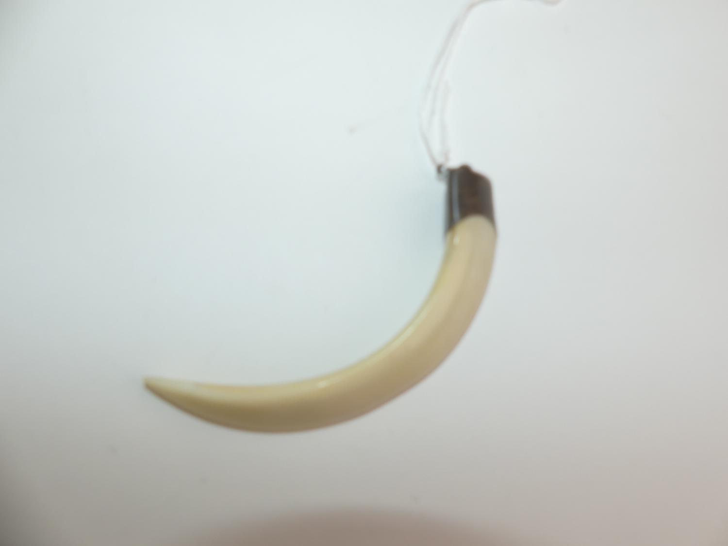 chinese hallmarked silver mounted tooth pendant