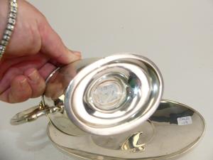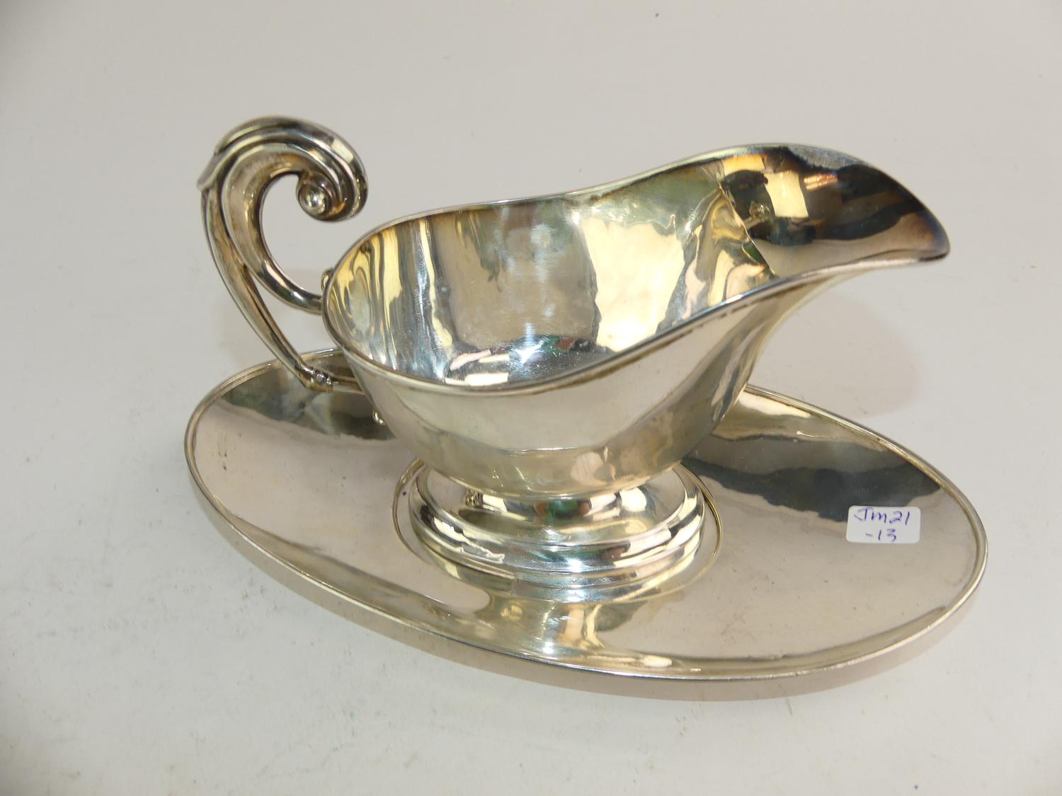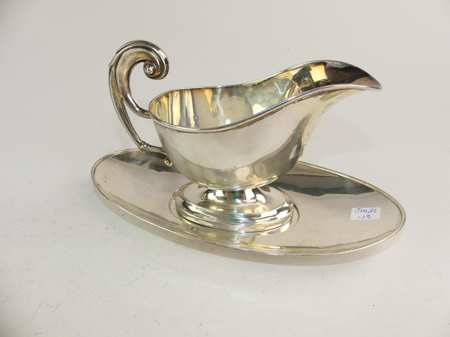 sterling silver sauce boat on stand, 302 grams