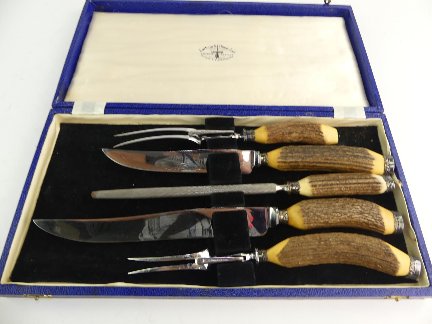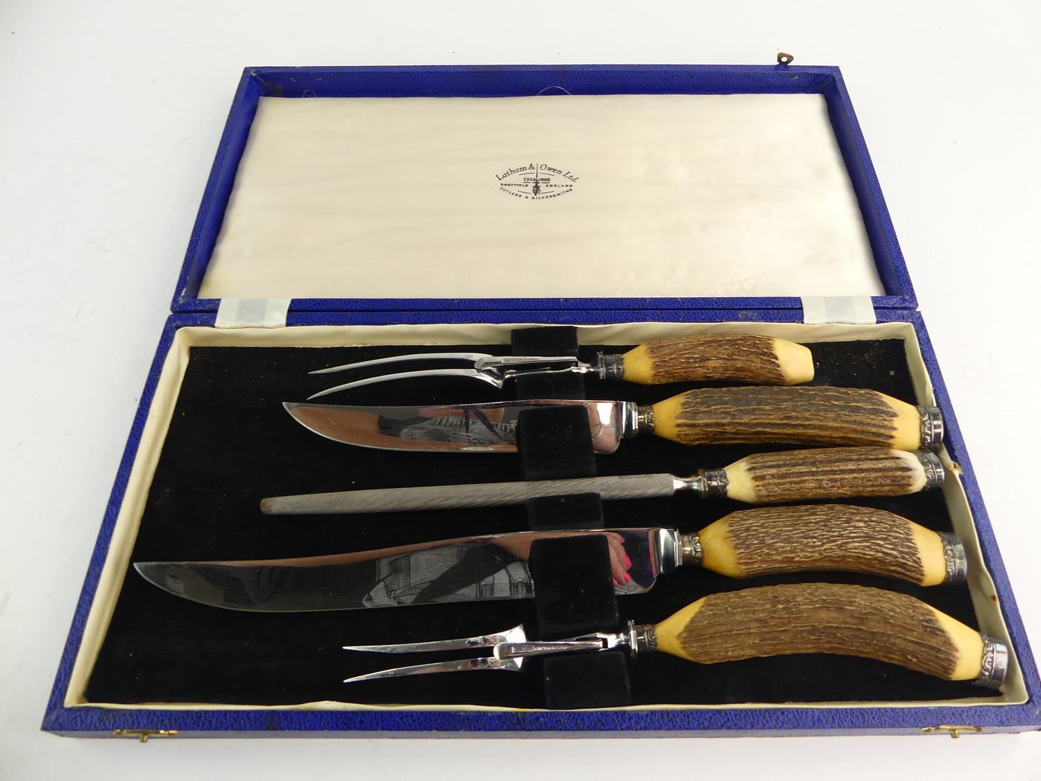 cased sheffield 5pc carving set by latham & owen ltd.