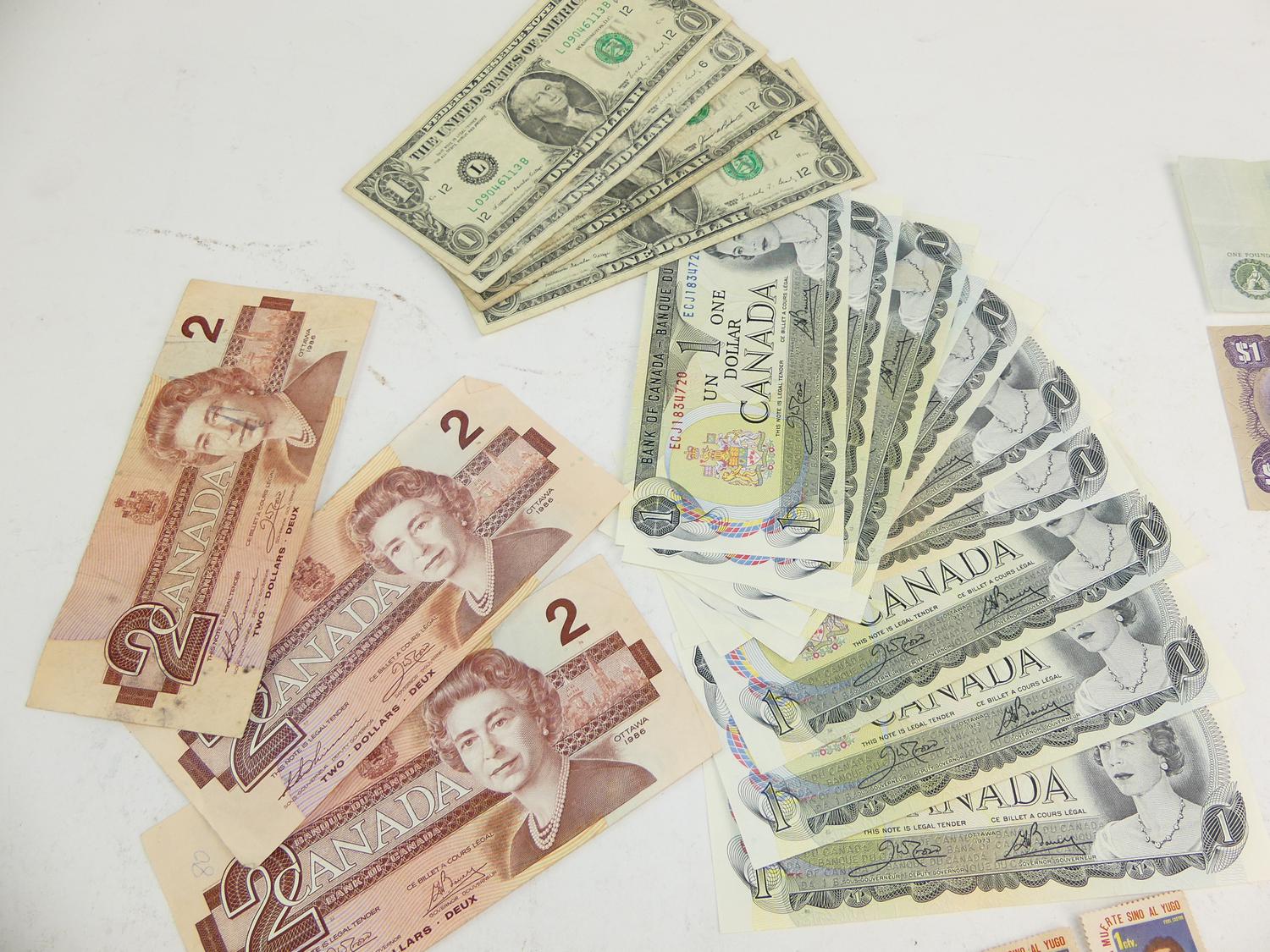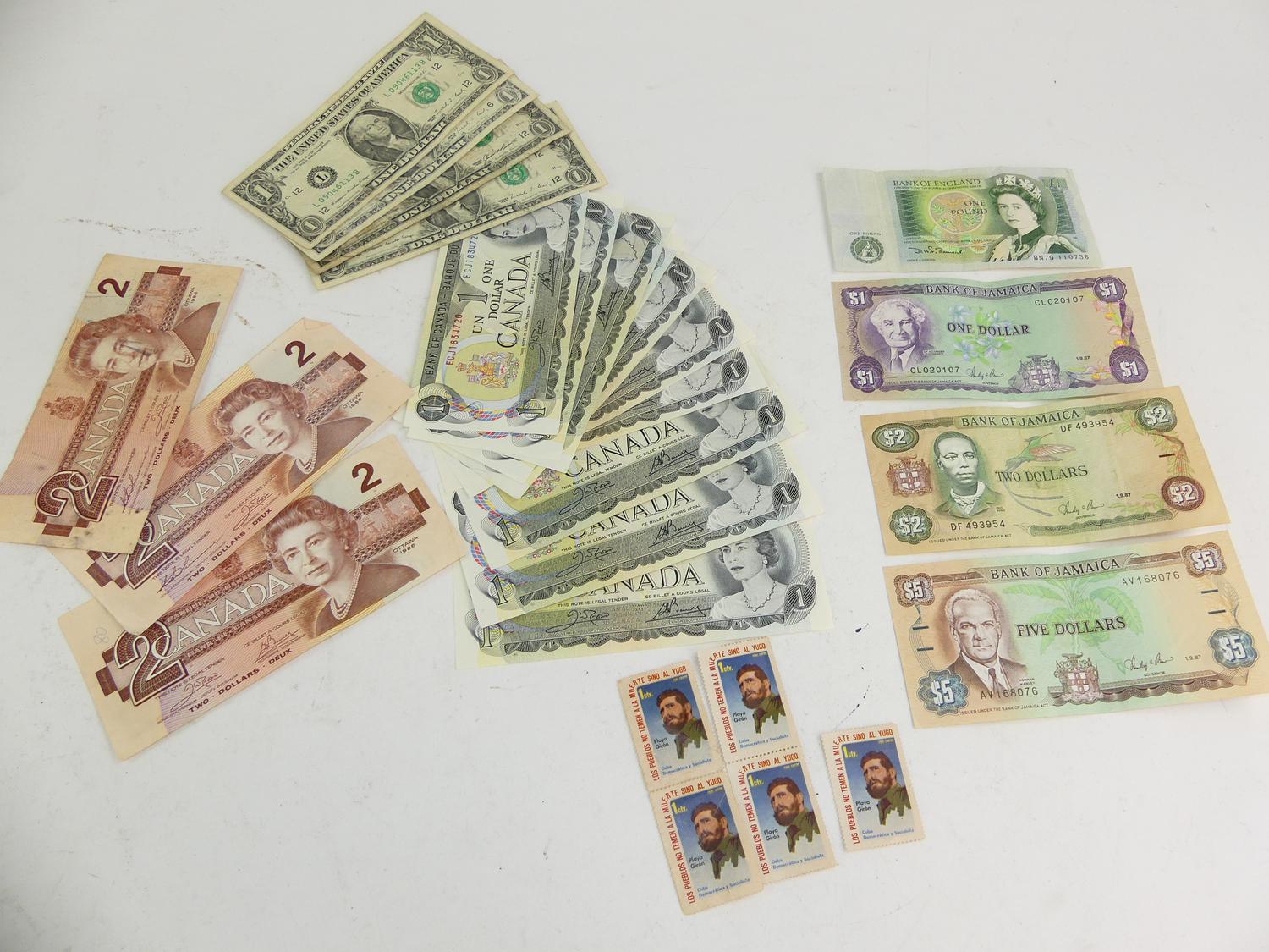 lot of us, canadian, jamaican bank notes