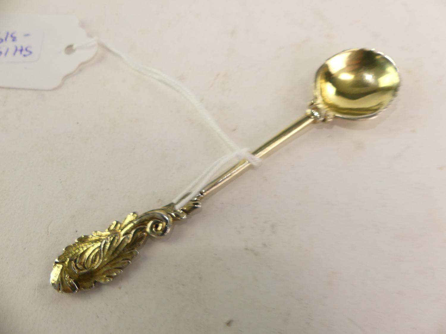 william iv gold washed sterling silver spoon, marked sc, london 1835, 4" x 12.9 grams