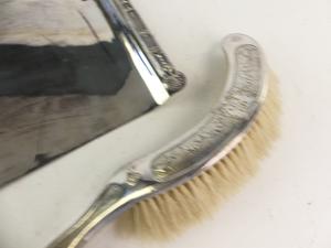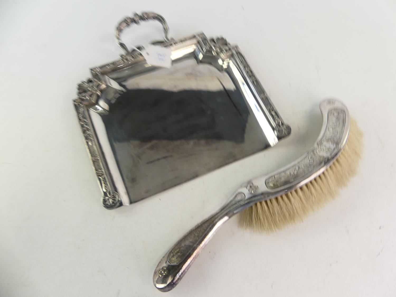 late 19th century french silver plate crumb tray and brush, 10" x 11"