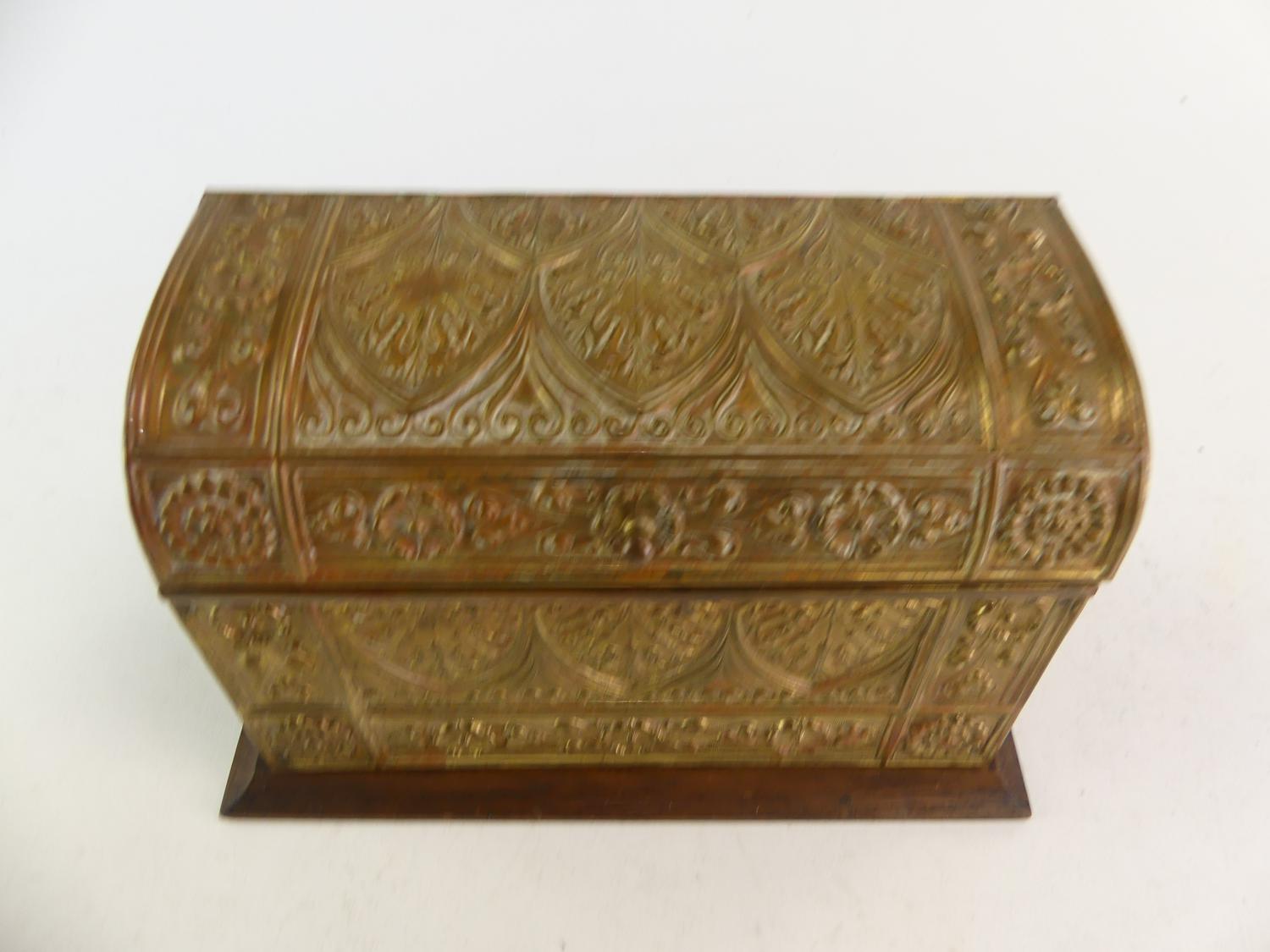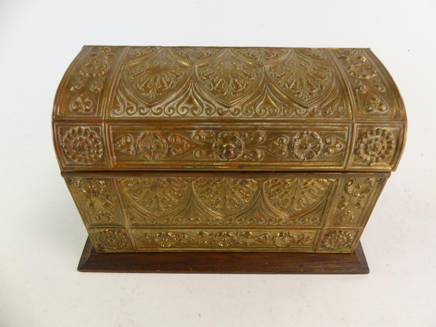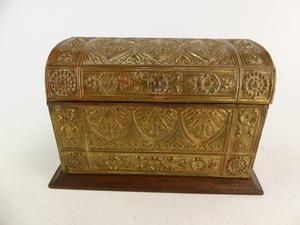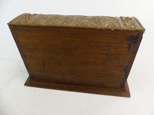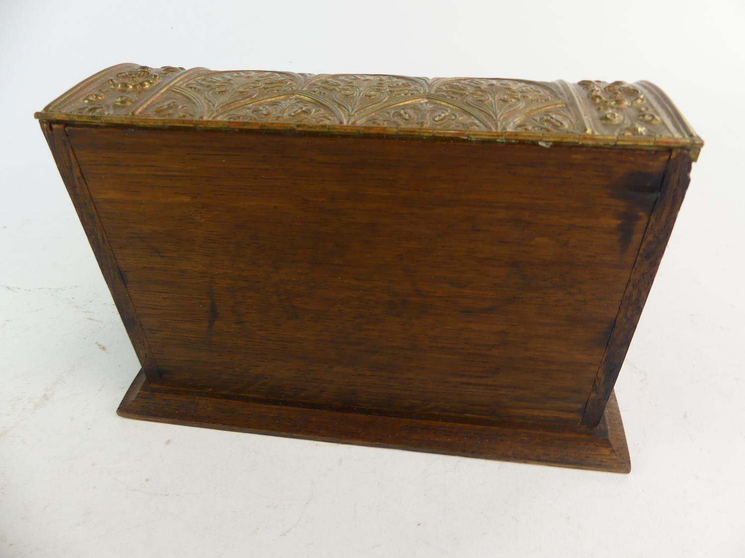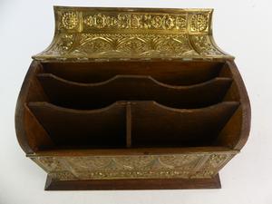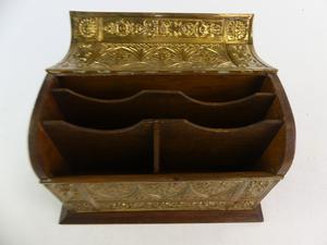victorian brass and oak letter box, 6" x 9 1/2" x 4 1/2"