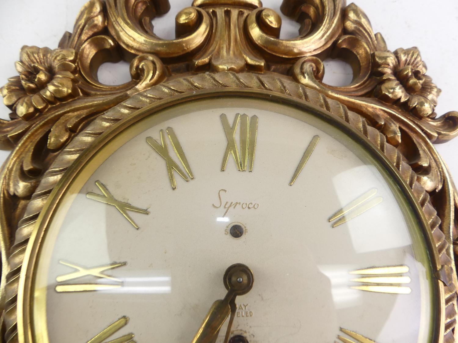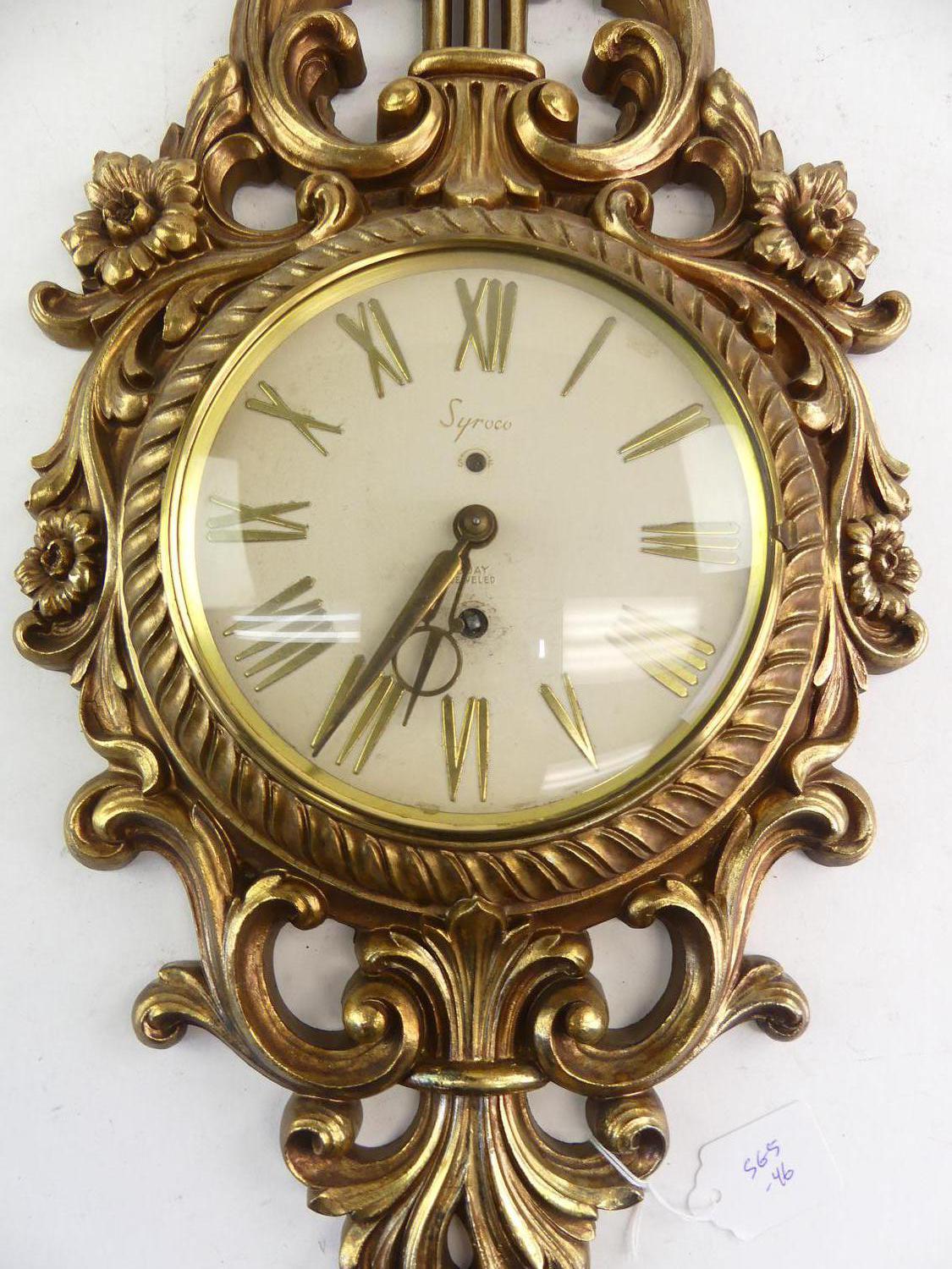 american gilded wall clock circa 1950, syracuse ornamental co. inc., ht. 27 1/2"