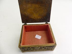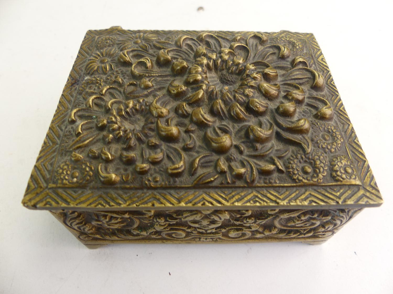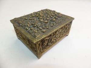 brass chrysanthemum motif box, 2" x 3 1/2" x 4 1/2"