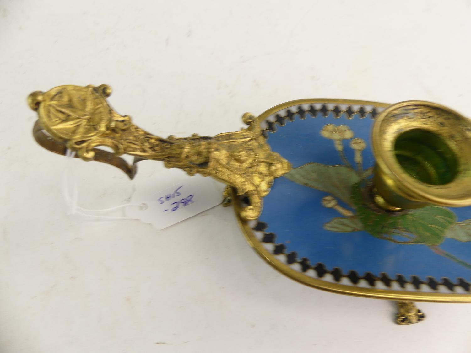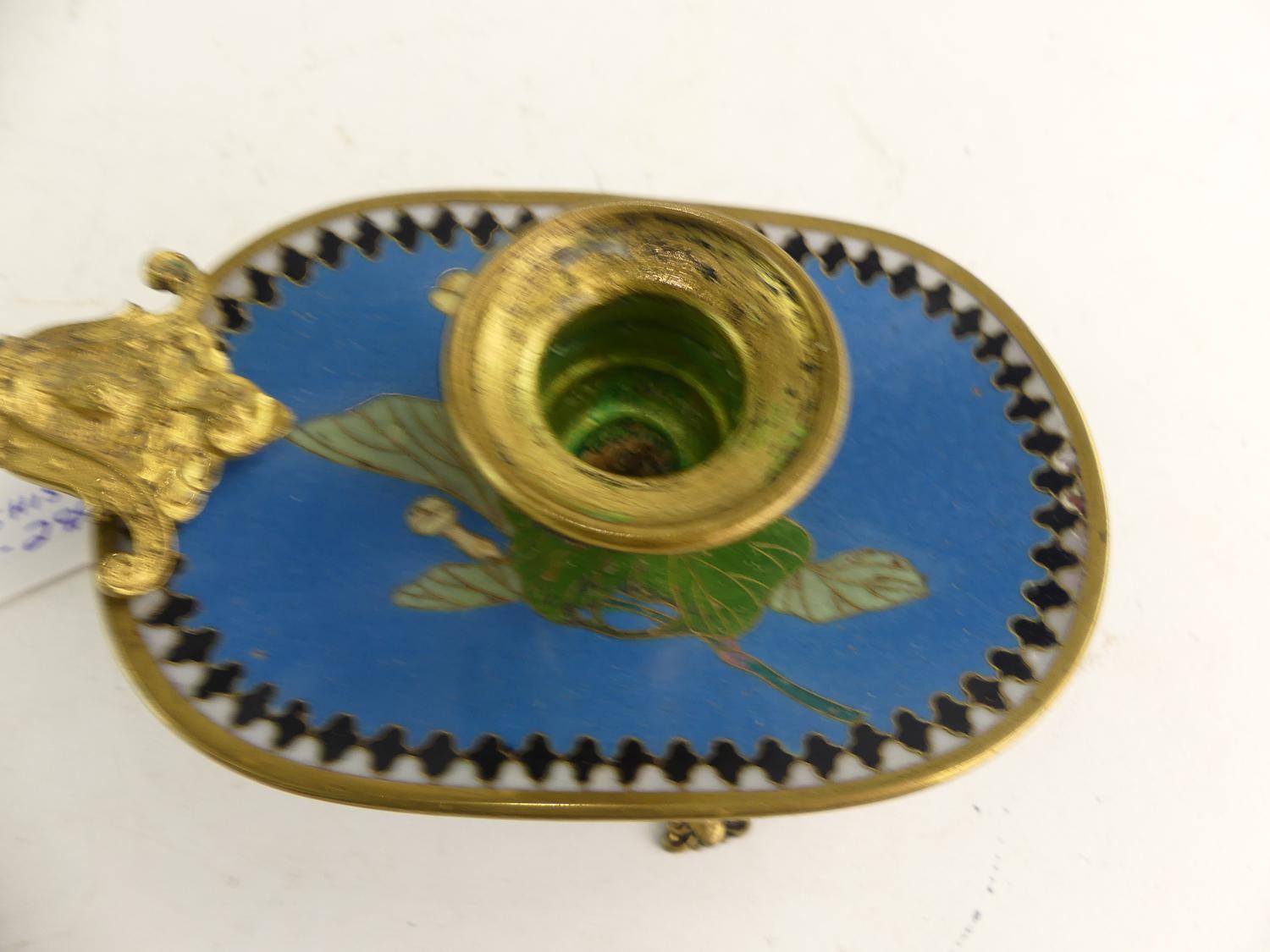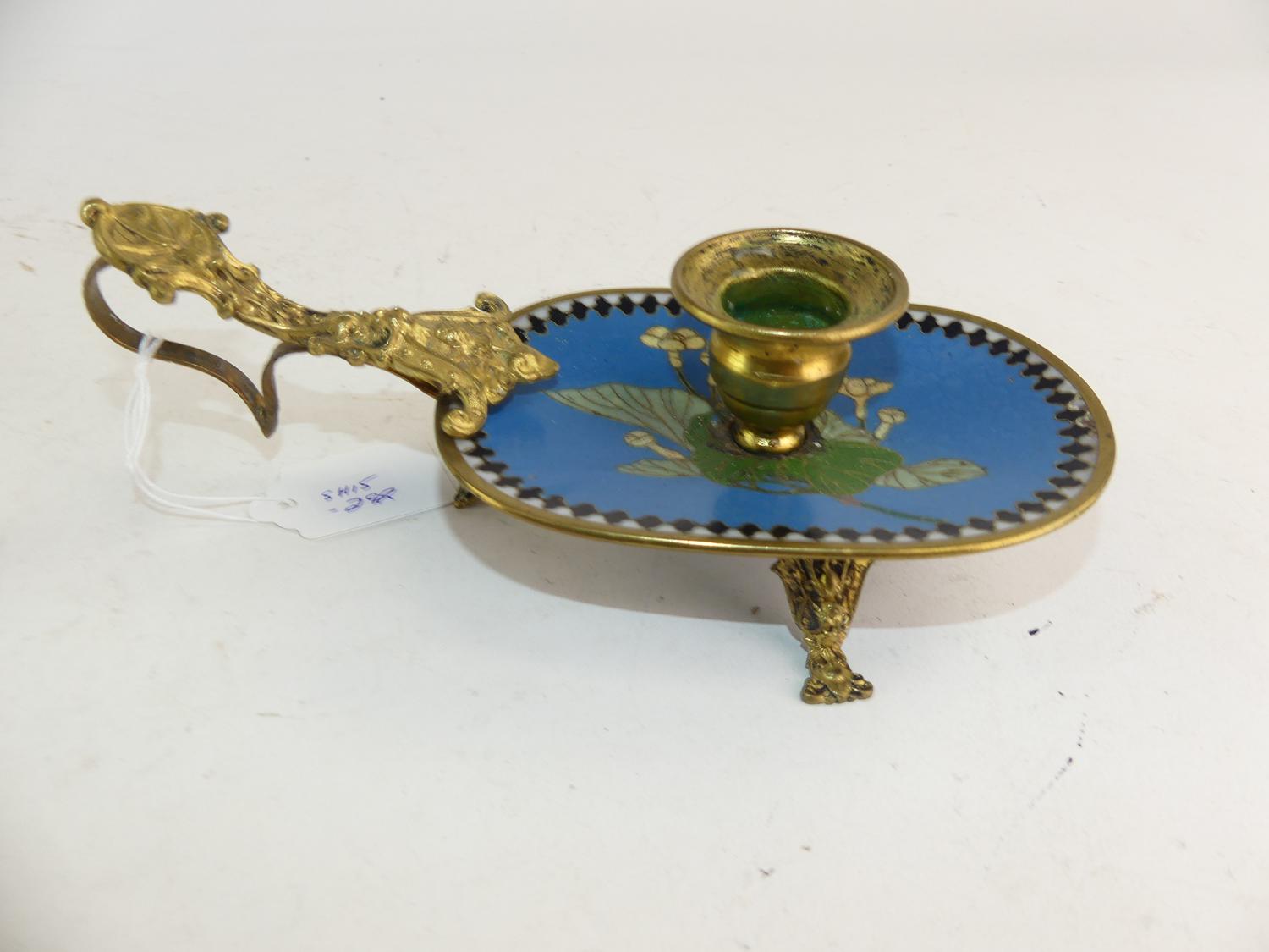 chinese cloisonne enamel and brass chamber stick, early 20th century, length 8"