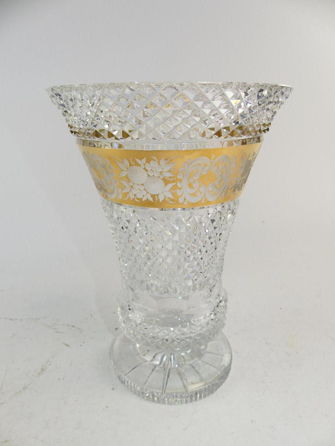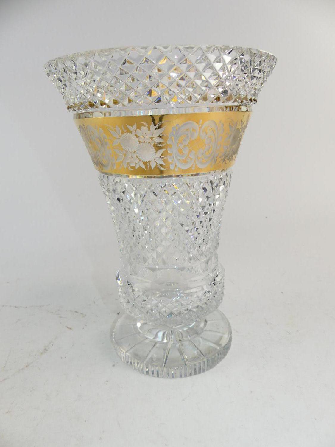 moser gilt decorated etched and cut crystal vase, ht. 10"