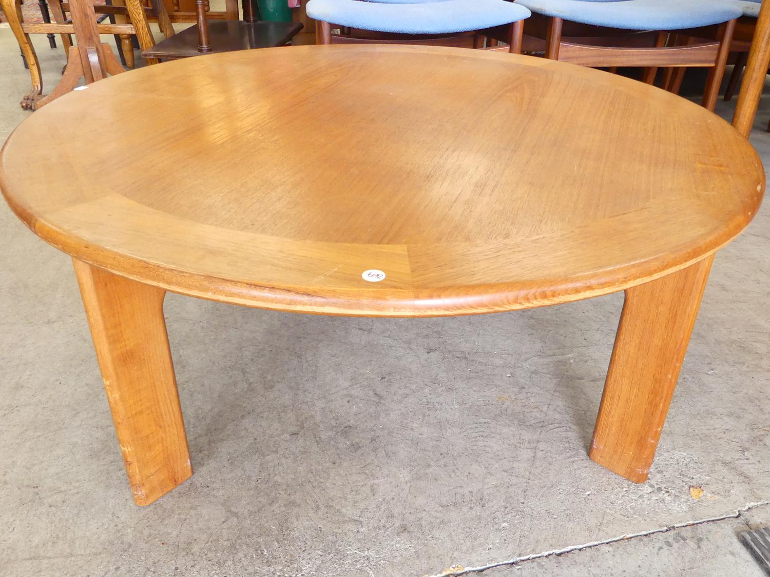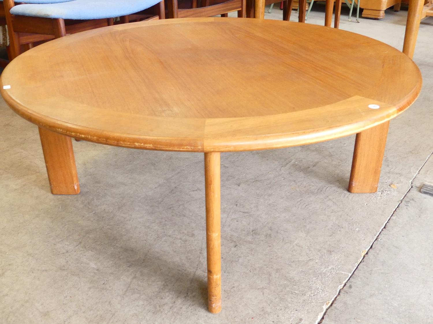 danish teak round coffee table designed by svend a. madsen for karl lindegaard, 16" x 40"