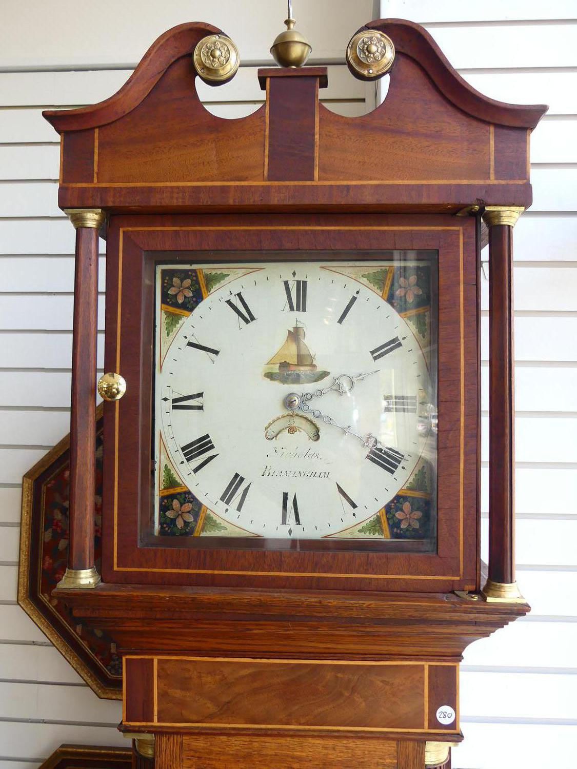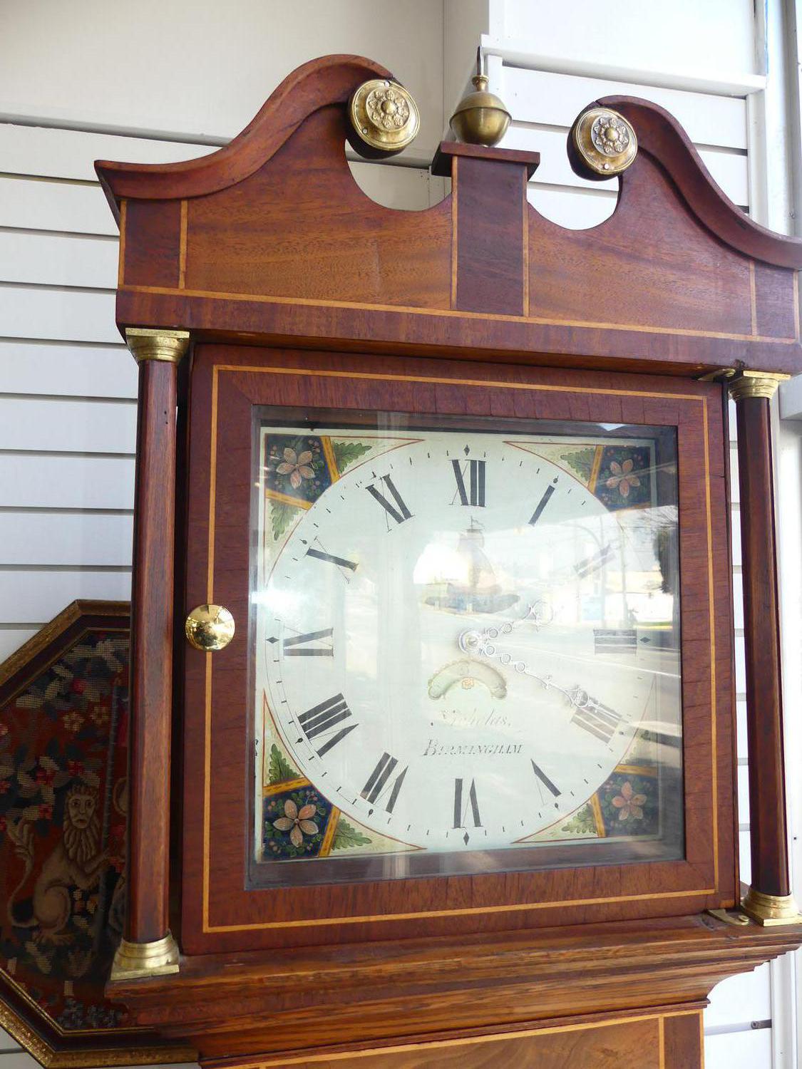 19th century inlaid mahogany and oak longcase clock, dial signed nicholas, birmingham, circa 1835