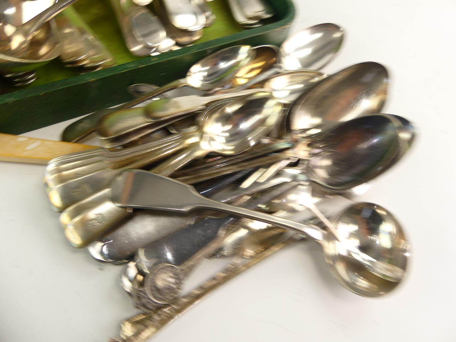 antique sheffield silver plate flatware service with other misc. flatware