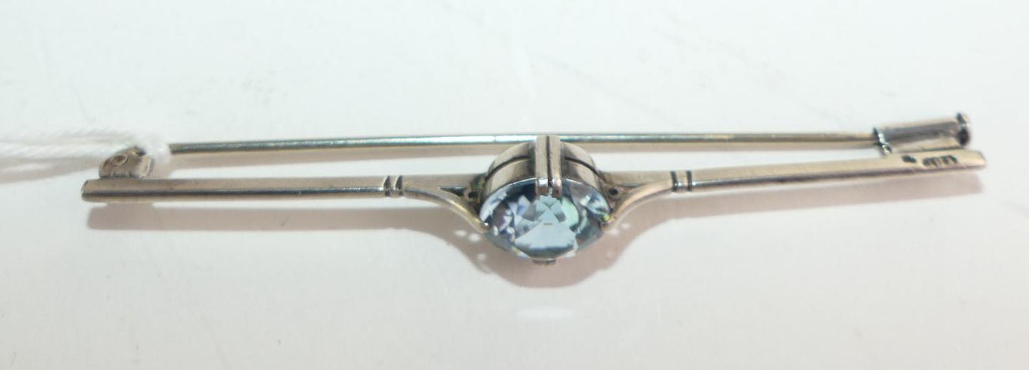 art deco silver spinel bar pin, hallmarked gbs