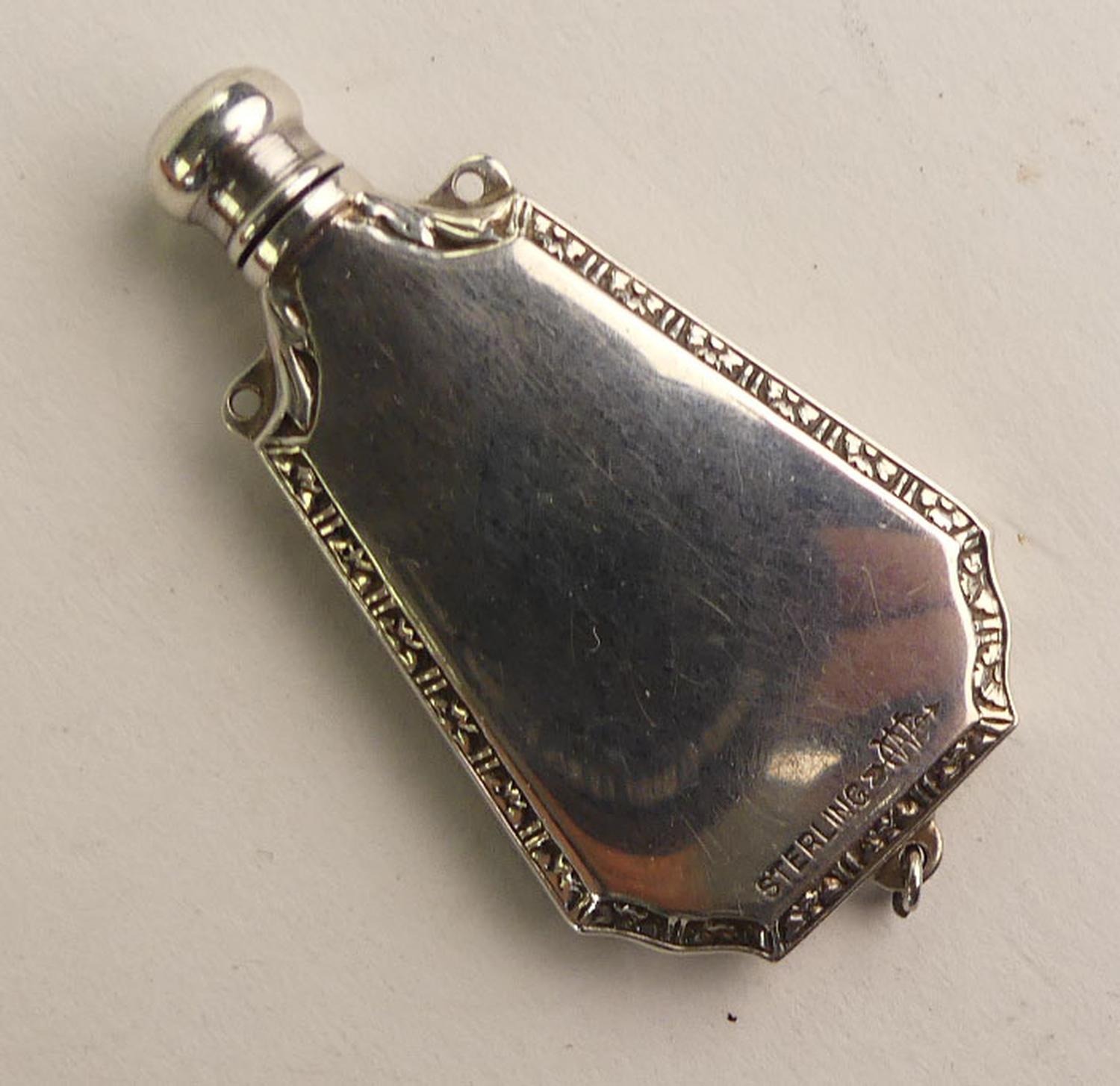 art deco silver perfume pendant flask