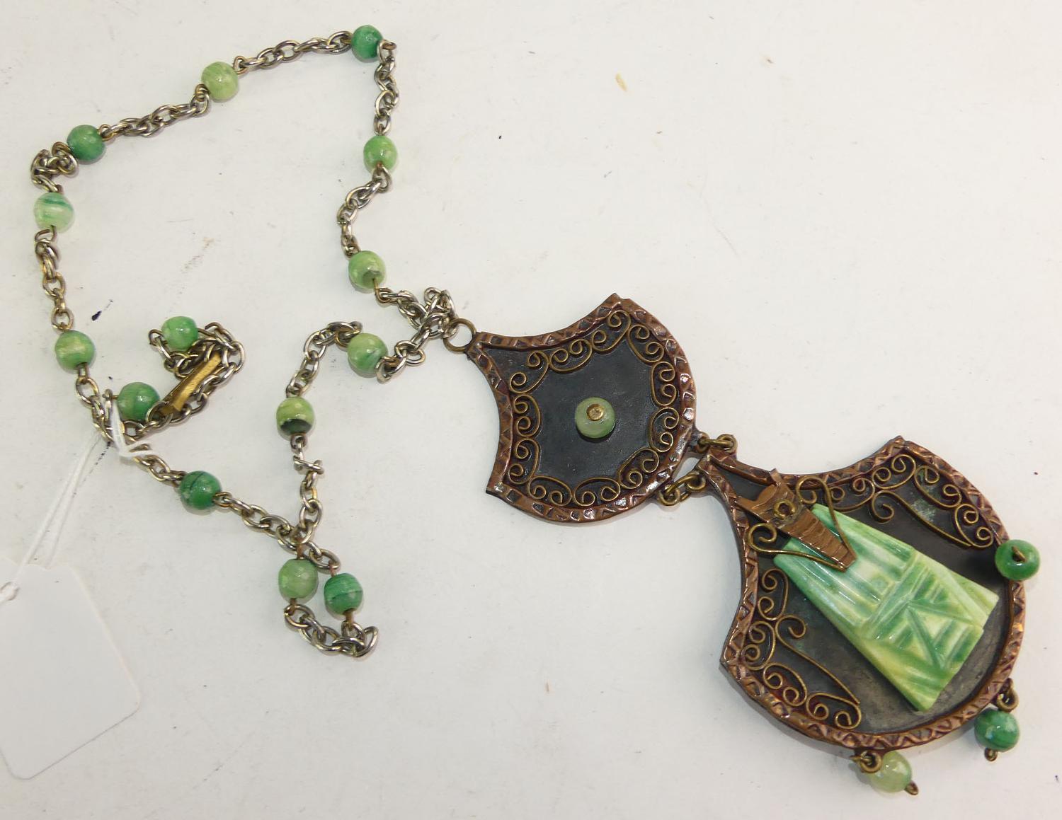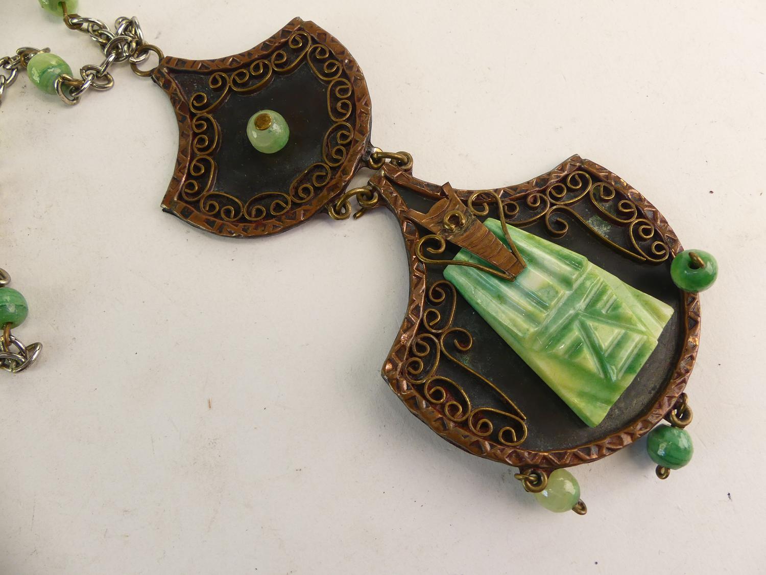 vintage mexican copper and blue onyx aztec mayan large pendant necklace