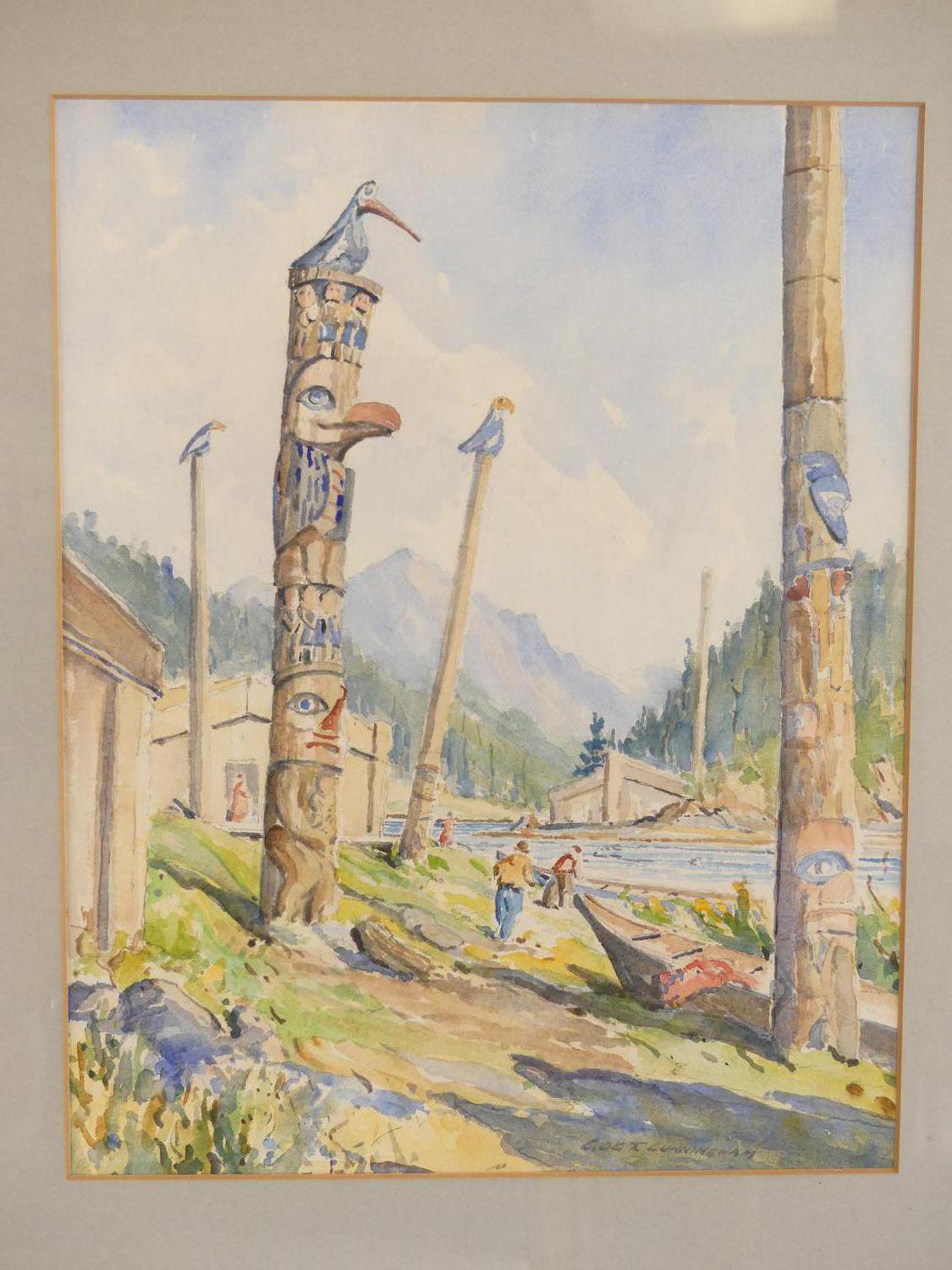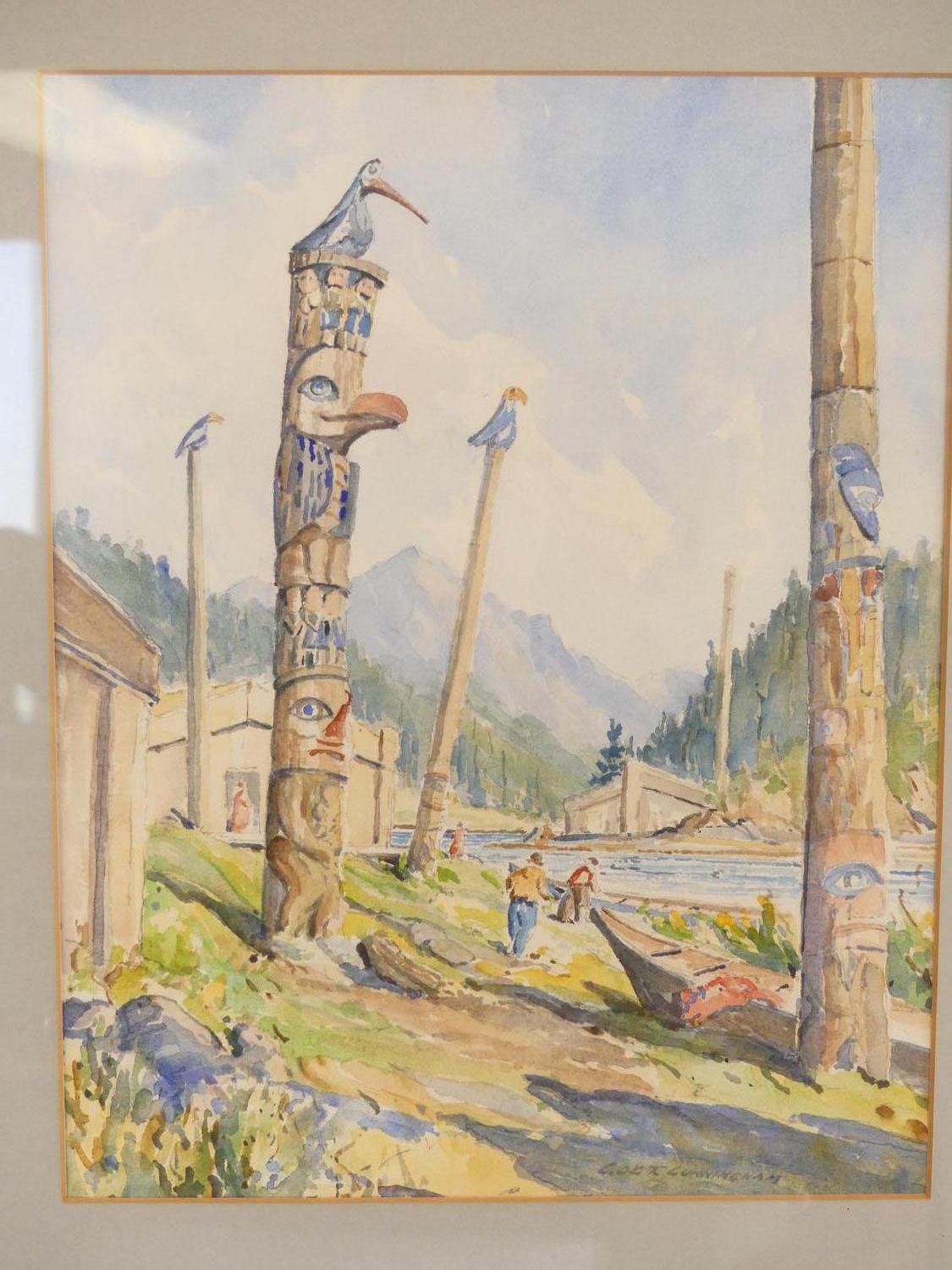 cecil a. de trafford cunningham (1897-1973), watercolour, 17" x 13", "totems"
