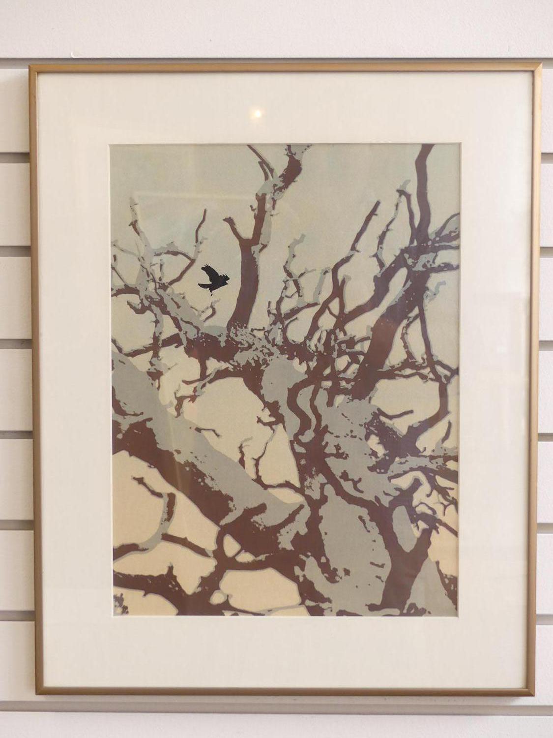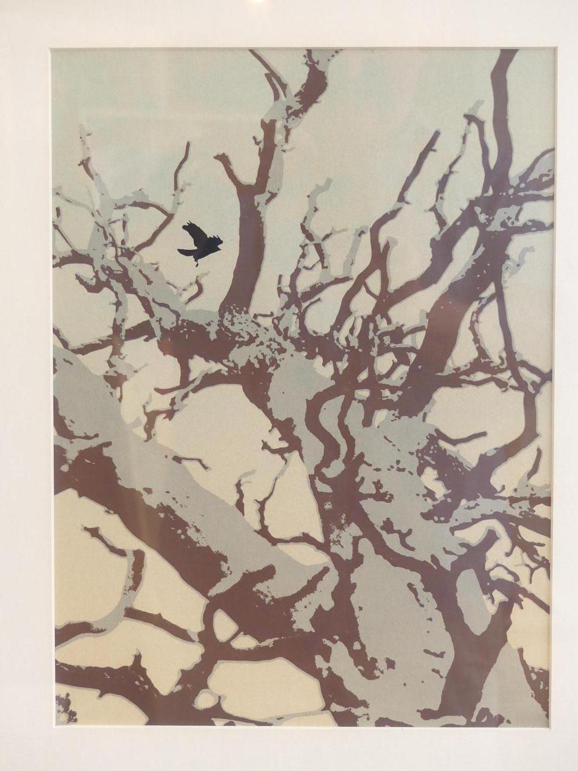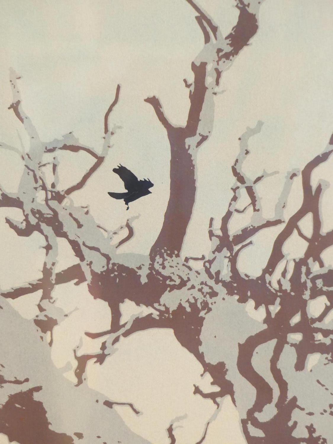 unsigned screenprint, 15" x 11", "garry oak with raven"