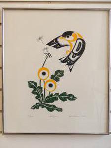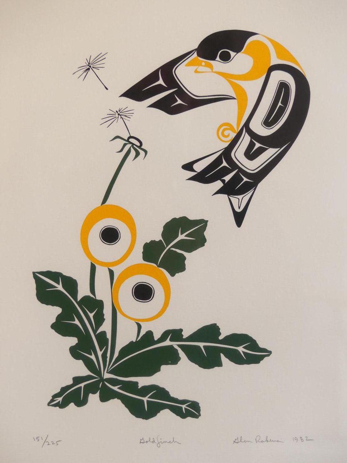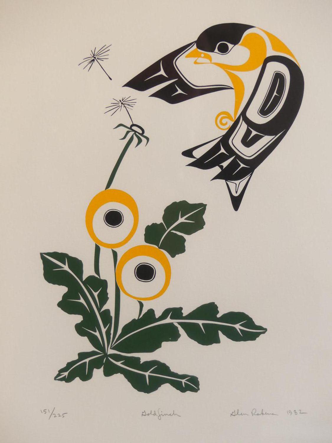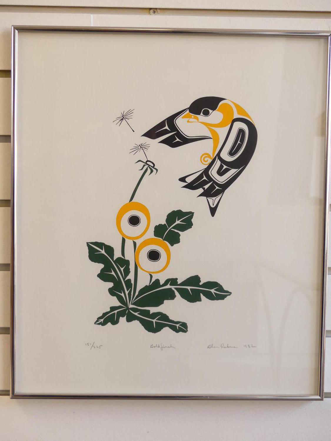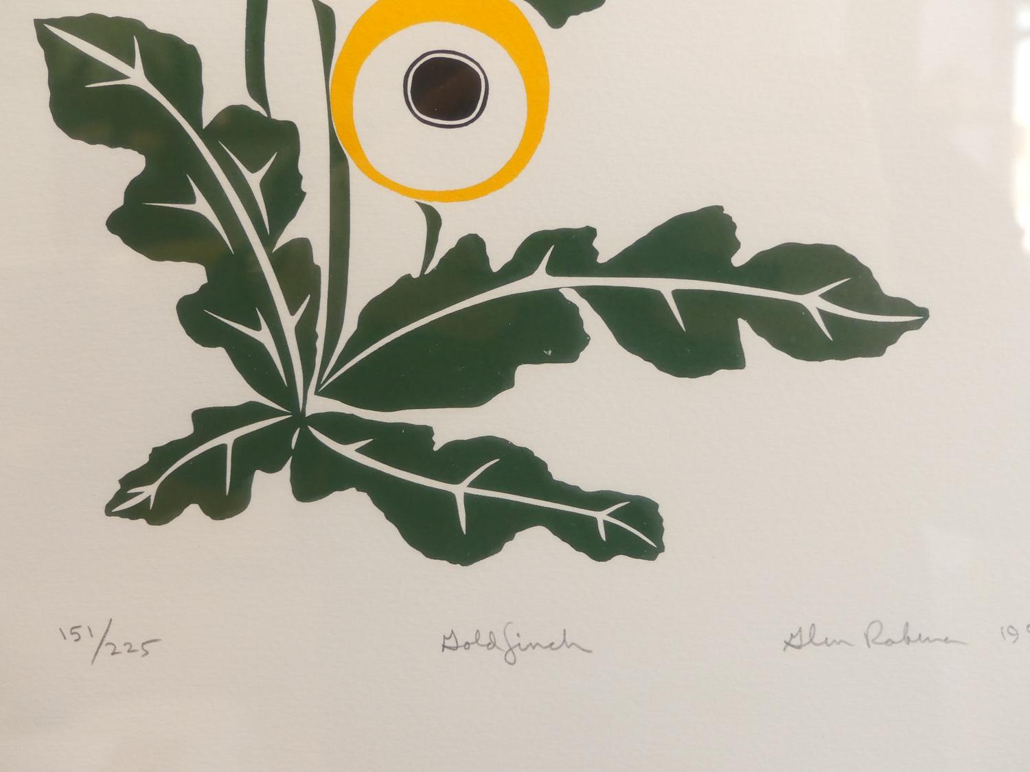 glen rabina, dated 1982, serigraph #151/225, 16" x 14", "gold finch"