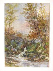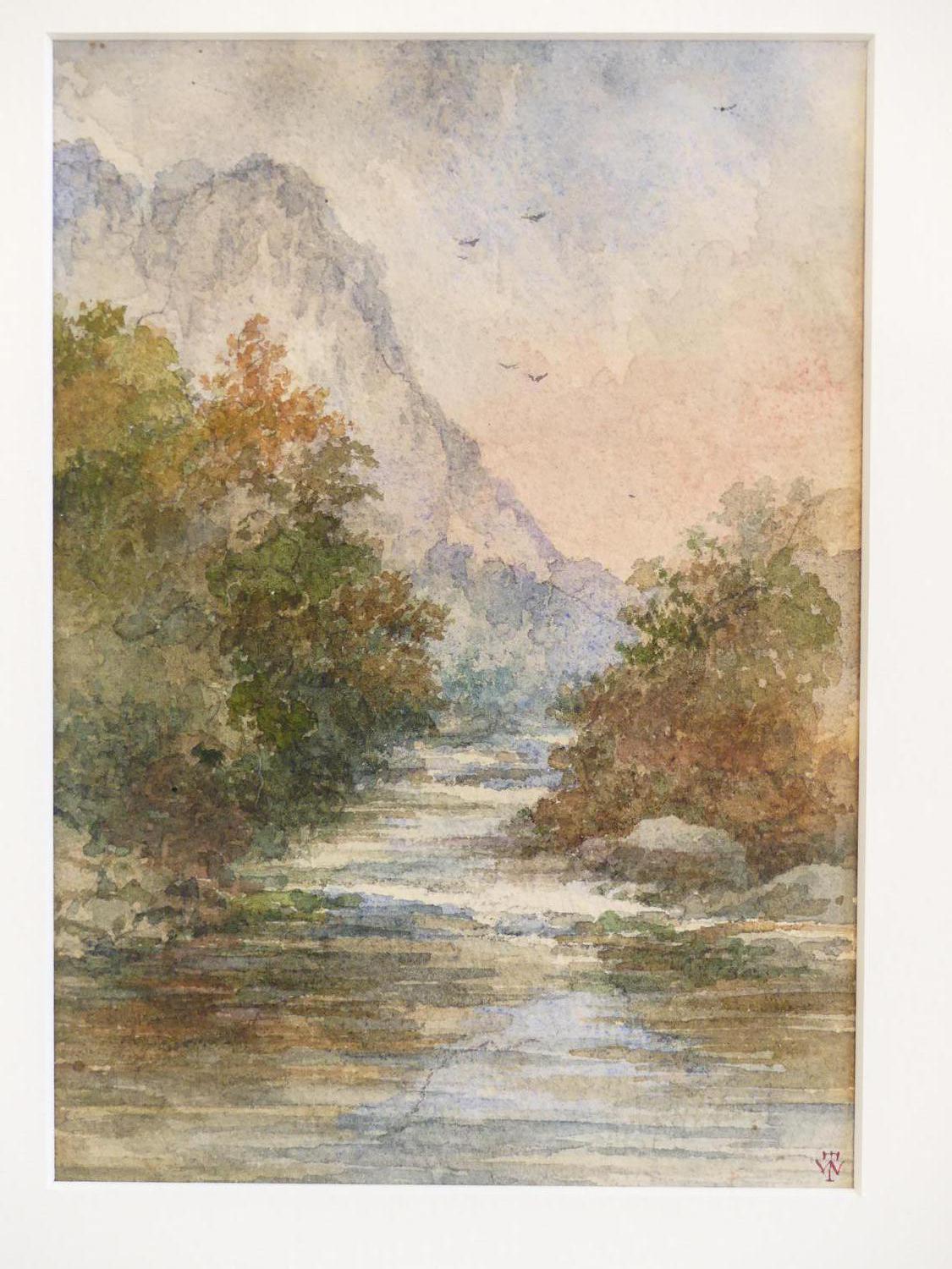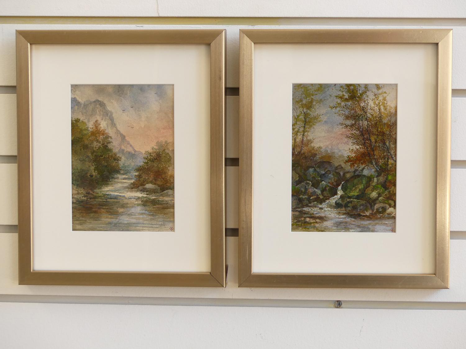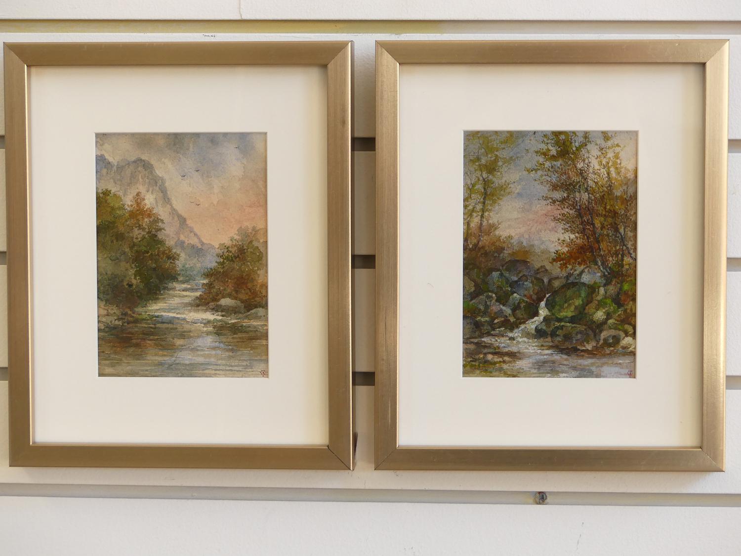 pair of victorian watercolours signed with monogram, 6 1/2" x 4 1/2", "river scenes"