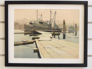 bearing initials eko, watercolour, 9" x 11 1/2", "west coast fishing boats"