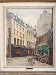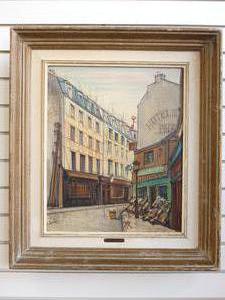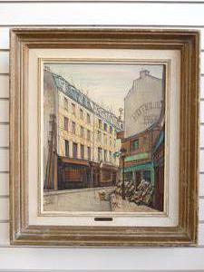 paul lambert (b.1910), oil on canvas, 18" x 15", "parisian street scene"
