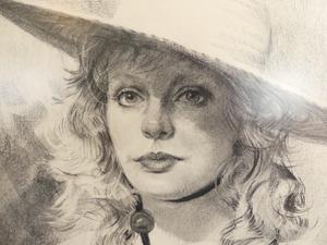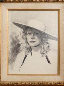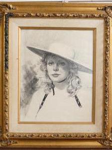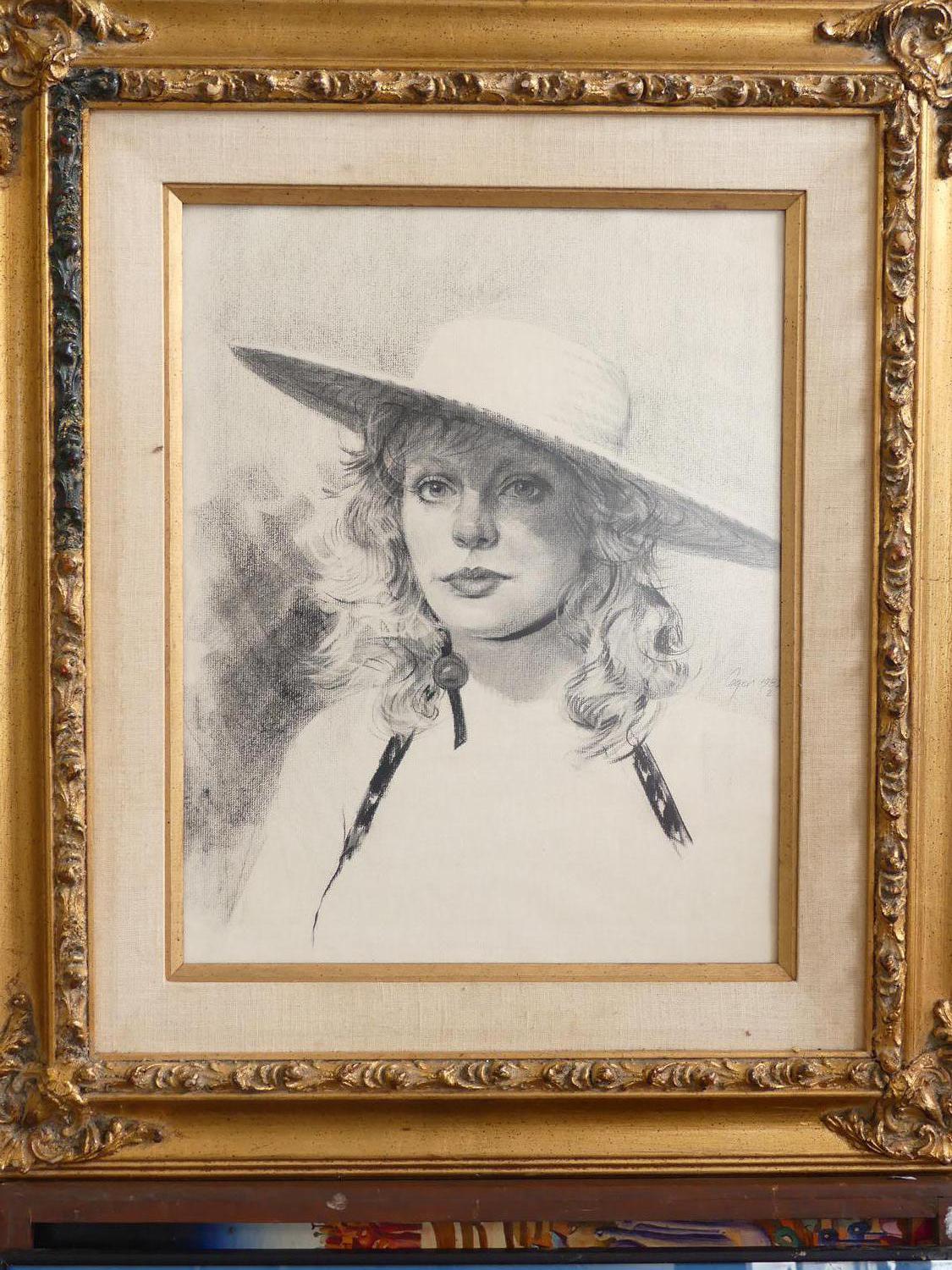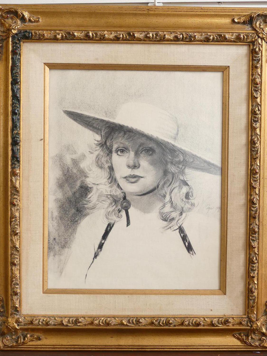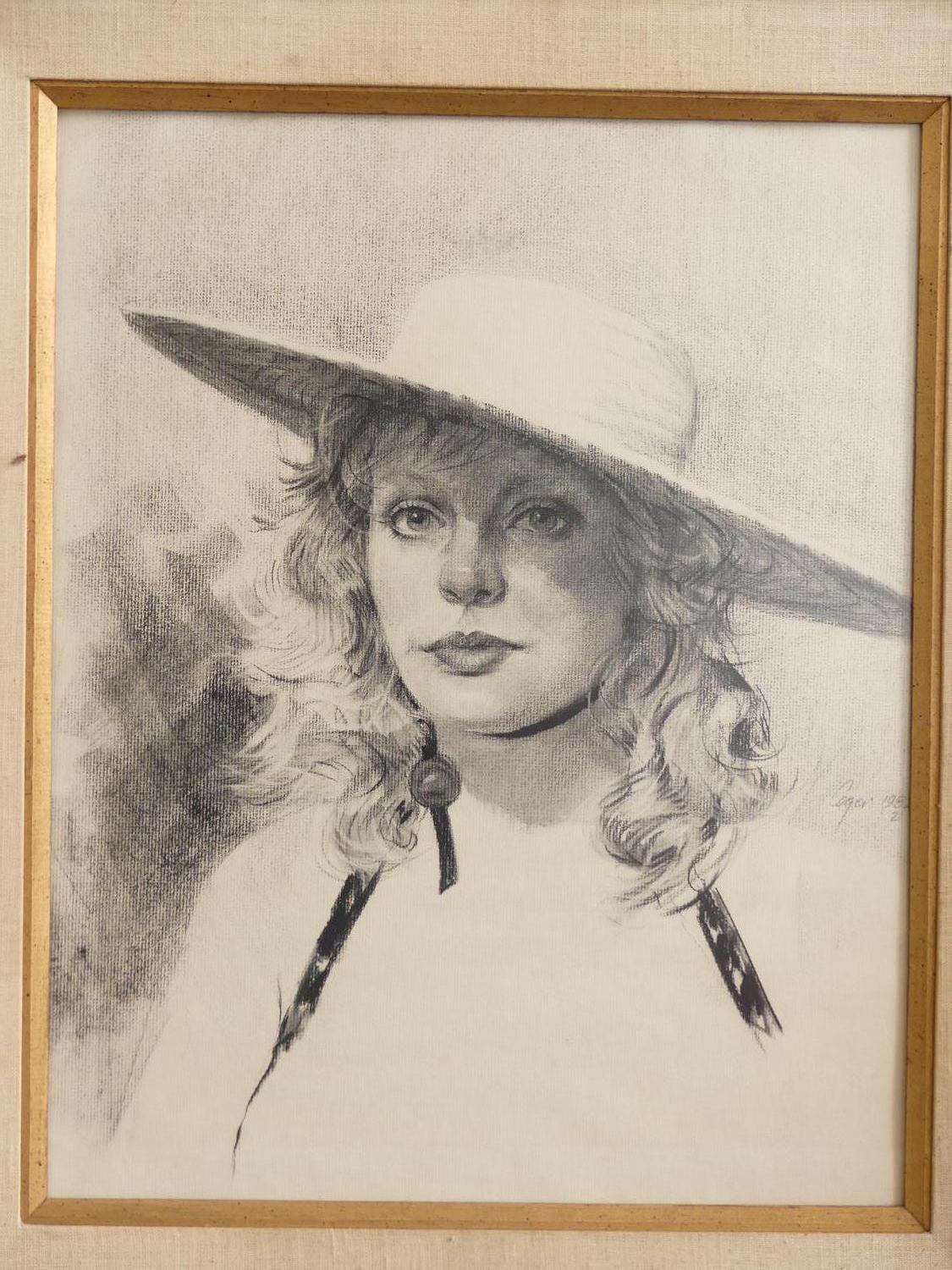 coger, dated 1982, pastel, 20" x 16", "portrait of a lady in hat", in a gilt frame