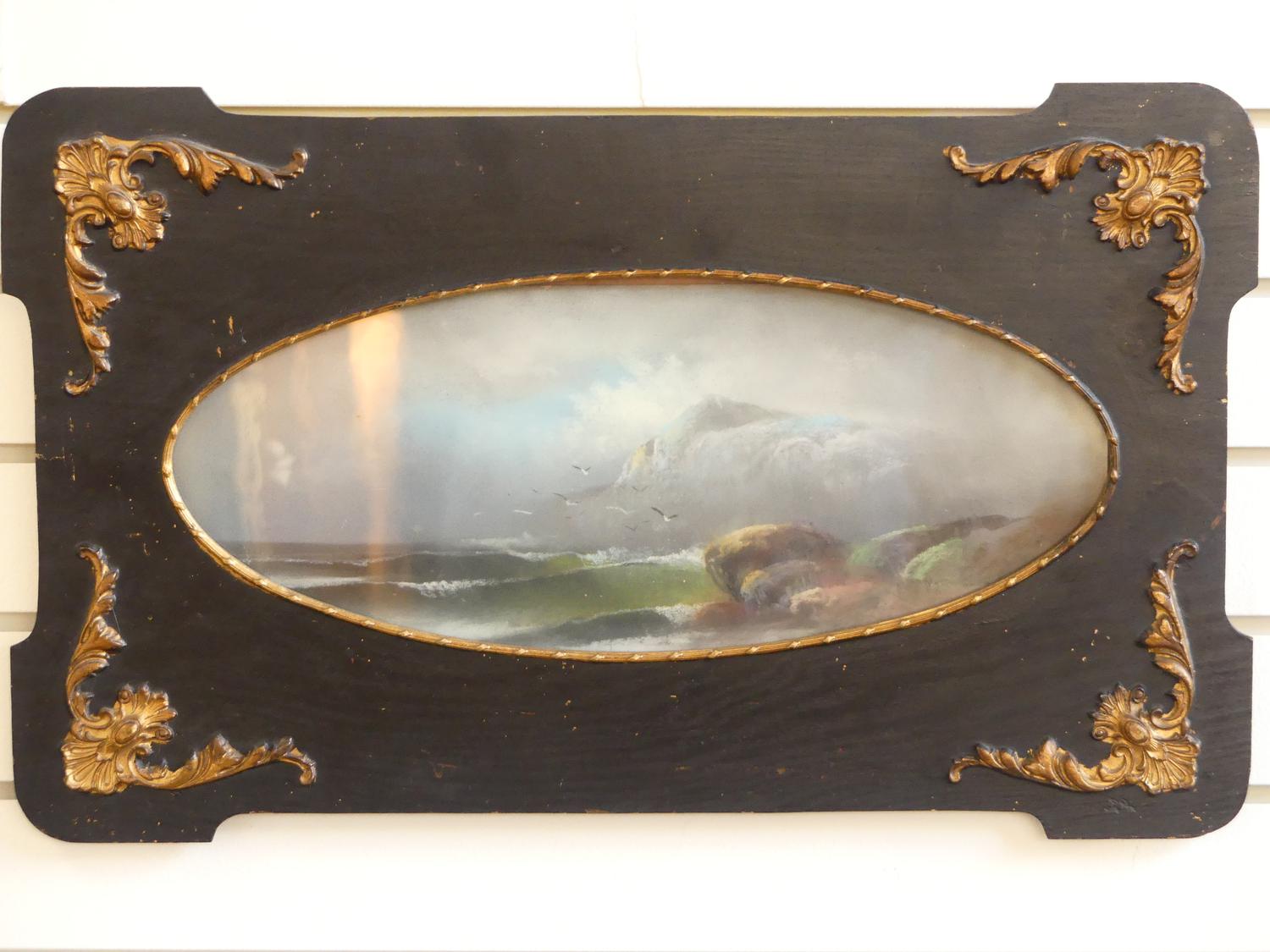 maisie wride (1892-1973), oval pastel, 7" x 16", "crashing surf"