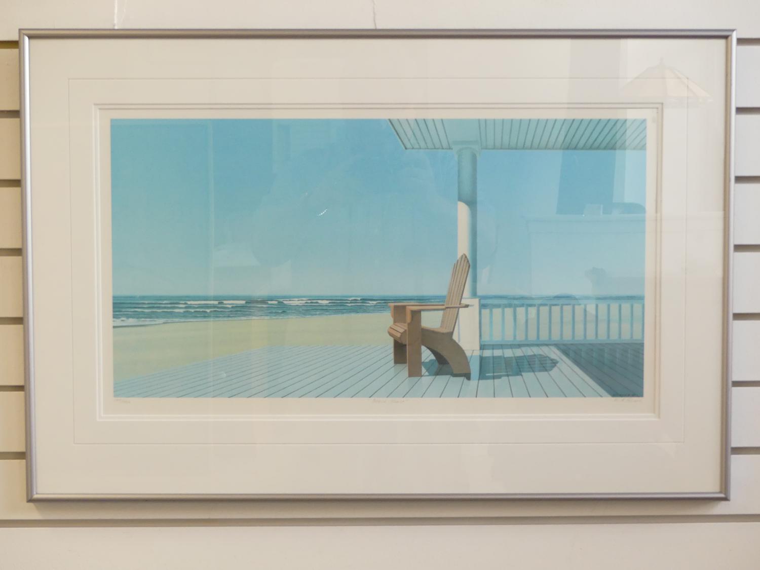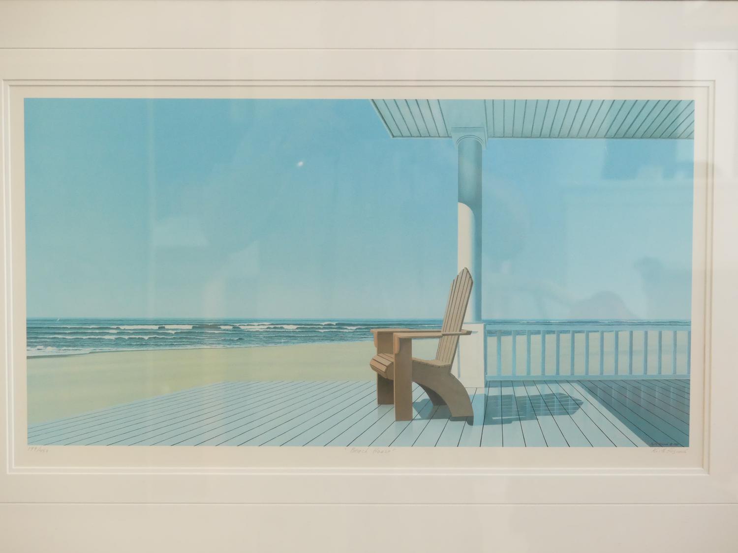 keith hiscock (b.1951), limited edition lithograph #199/450, 13" x 24", "beach house"