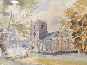 watercolour indistinctly signed 9 1/2" x 13 1/2", "untitled castle"