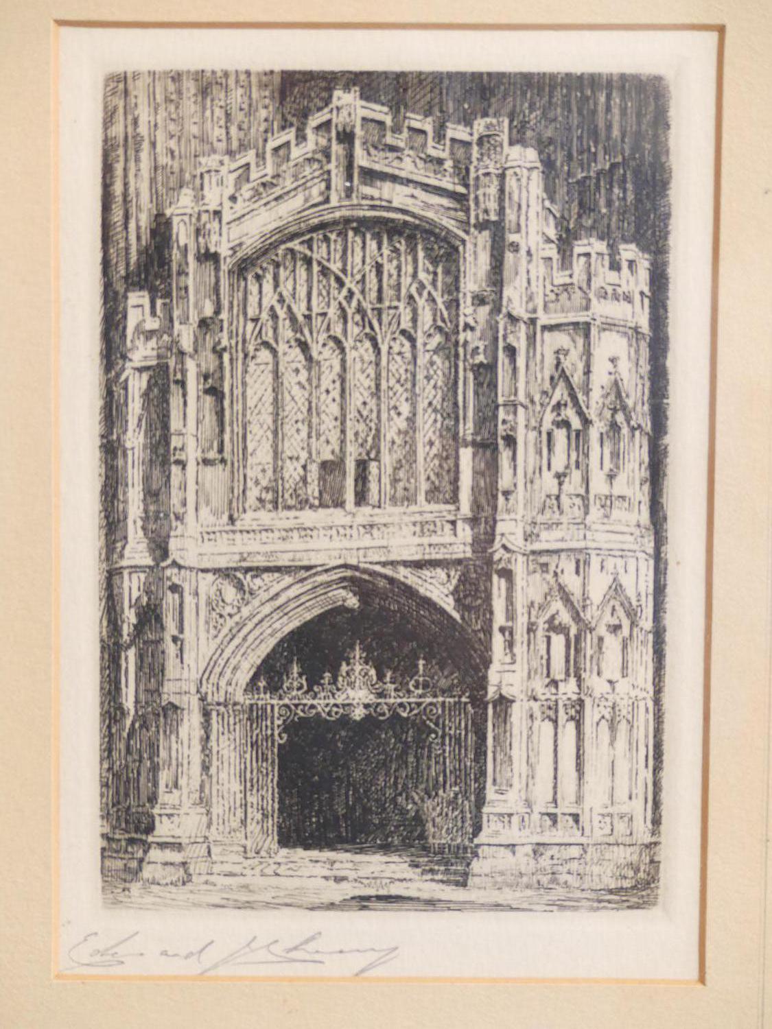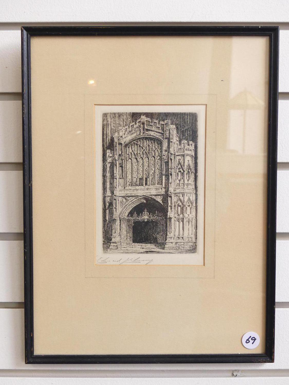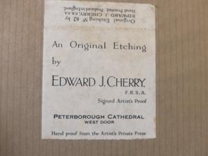 edward cherry (1886-1960), etching, 6" x 4", "gothic interior door"