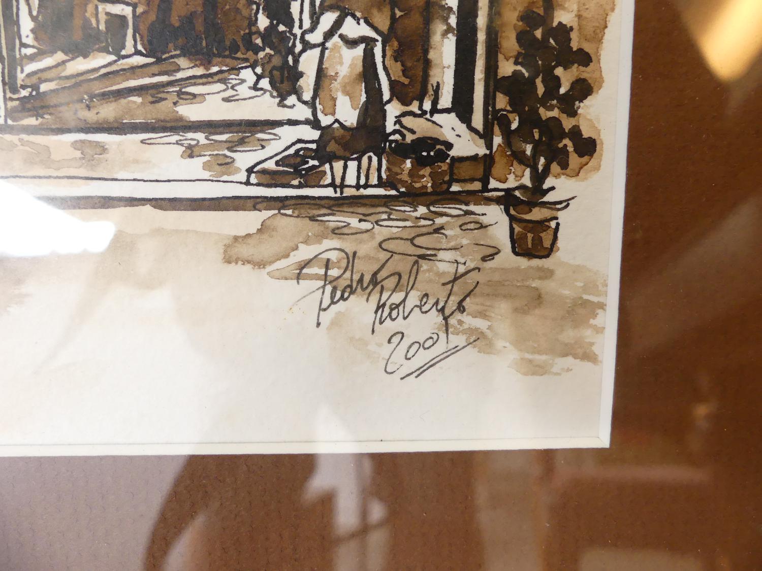 pedro robert, dated 2001, pair of watercolours, 8" x 5", "street scenes"