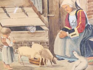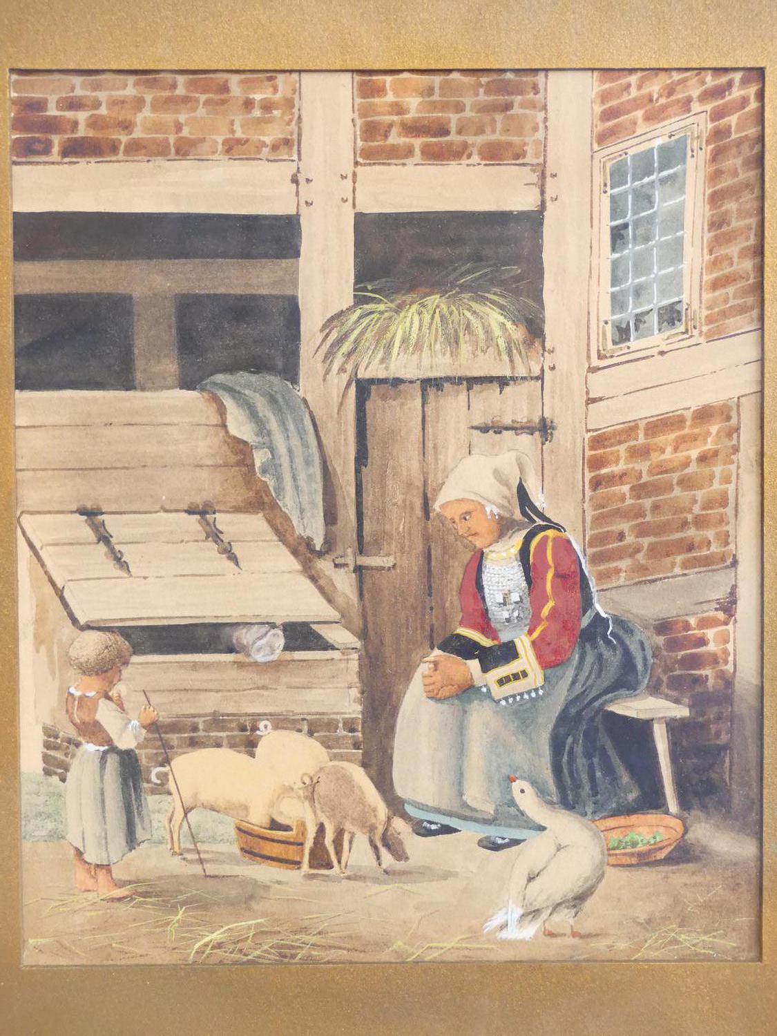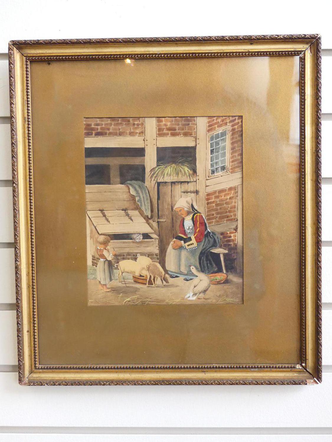 19th century watercolour, 9" x 7", "farm scene"