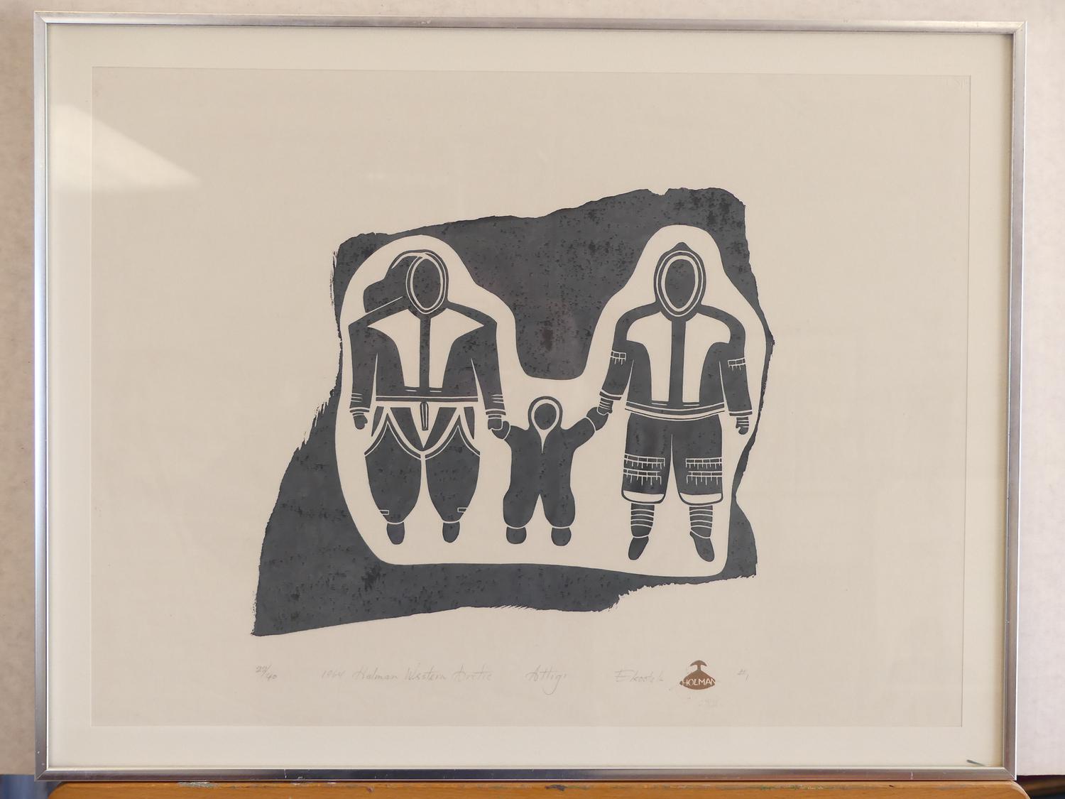 victor ekootak (1916-1965), stonecut #22/40, 16" x 21", "attigi (1969)"