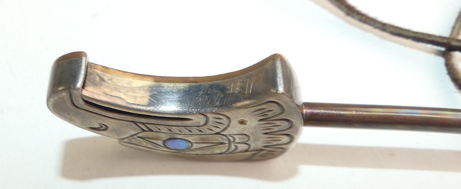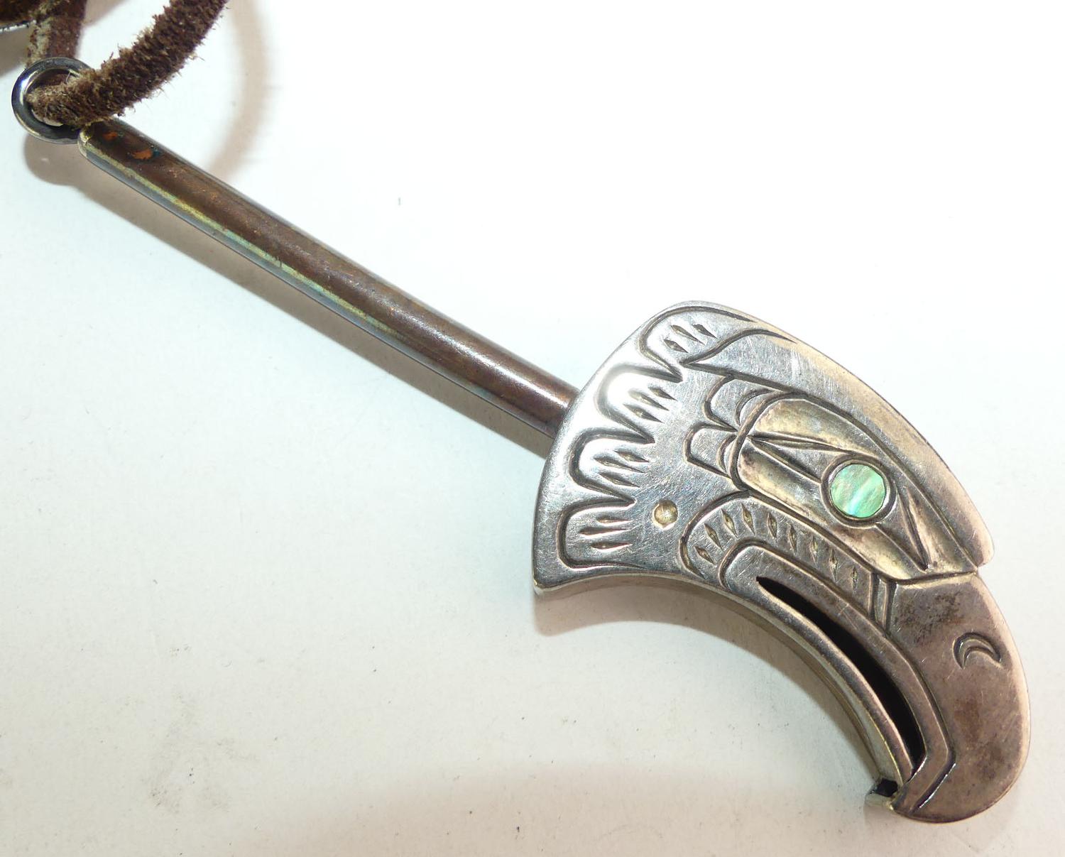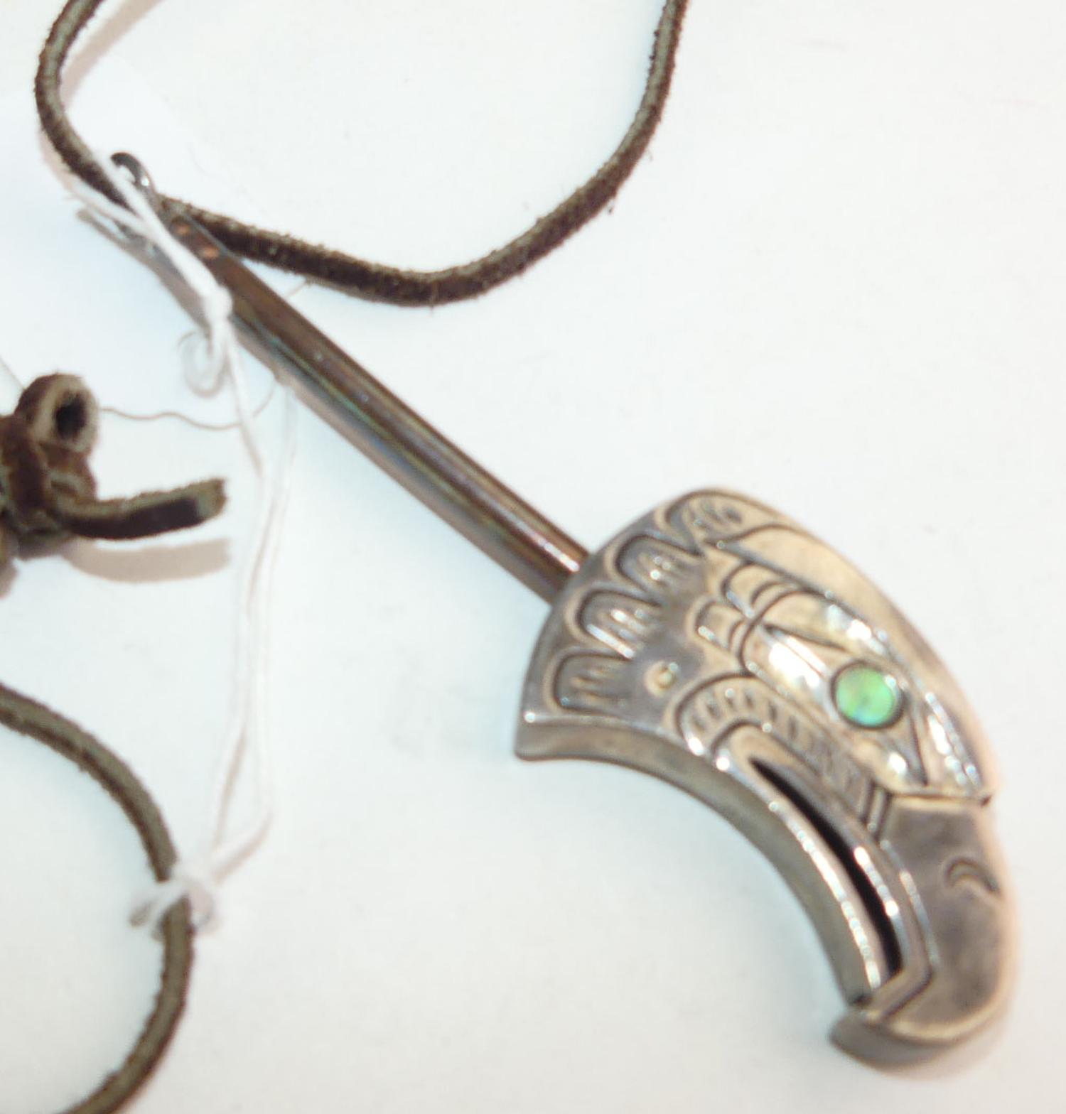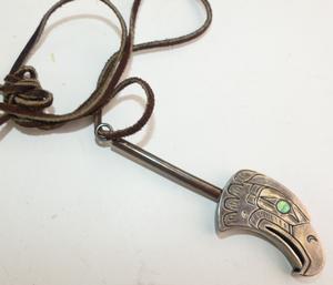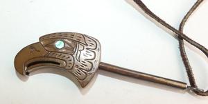 Eagle pendant is 4" in length, leather is 24"