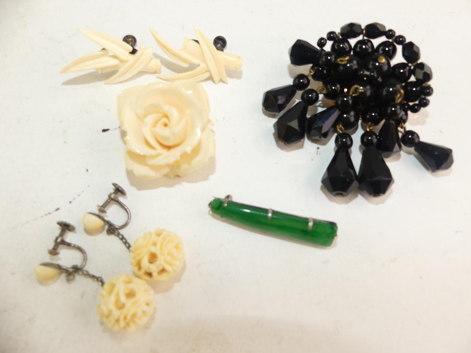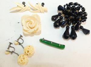 vintage french jet brooch, ivory items, jadeite glass brooch