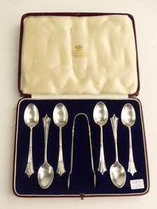 cased silver teaspoon set, joseph rodgers & sons, sheffield 1939, 107 grams