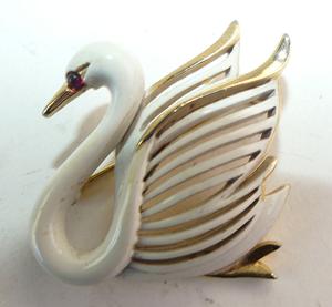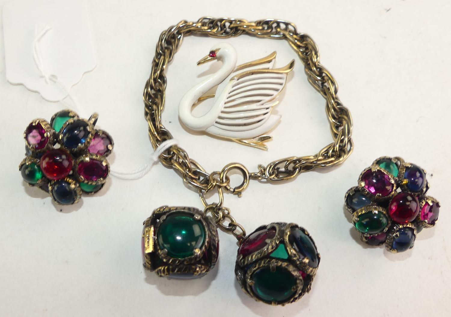 vintage signed trifari bracelet and earrings, enamel signed swan brooch