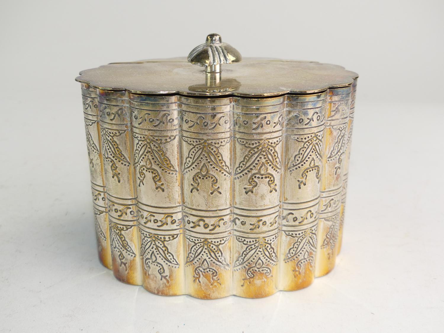 indian silver plated tea caddy 5" x 3 1/2" x 4"